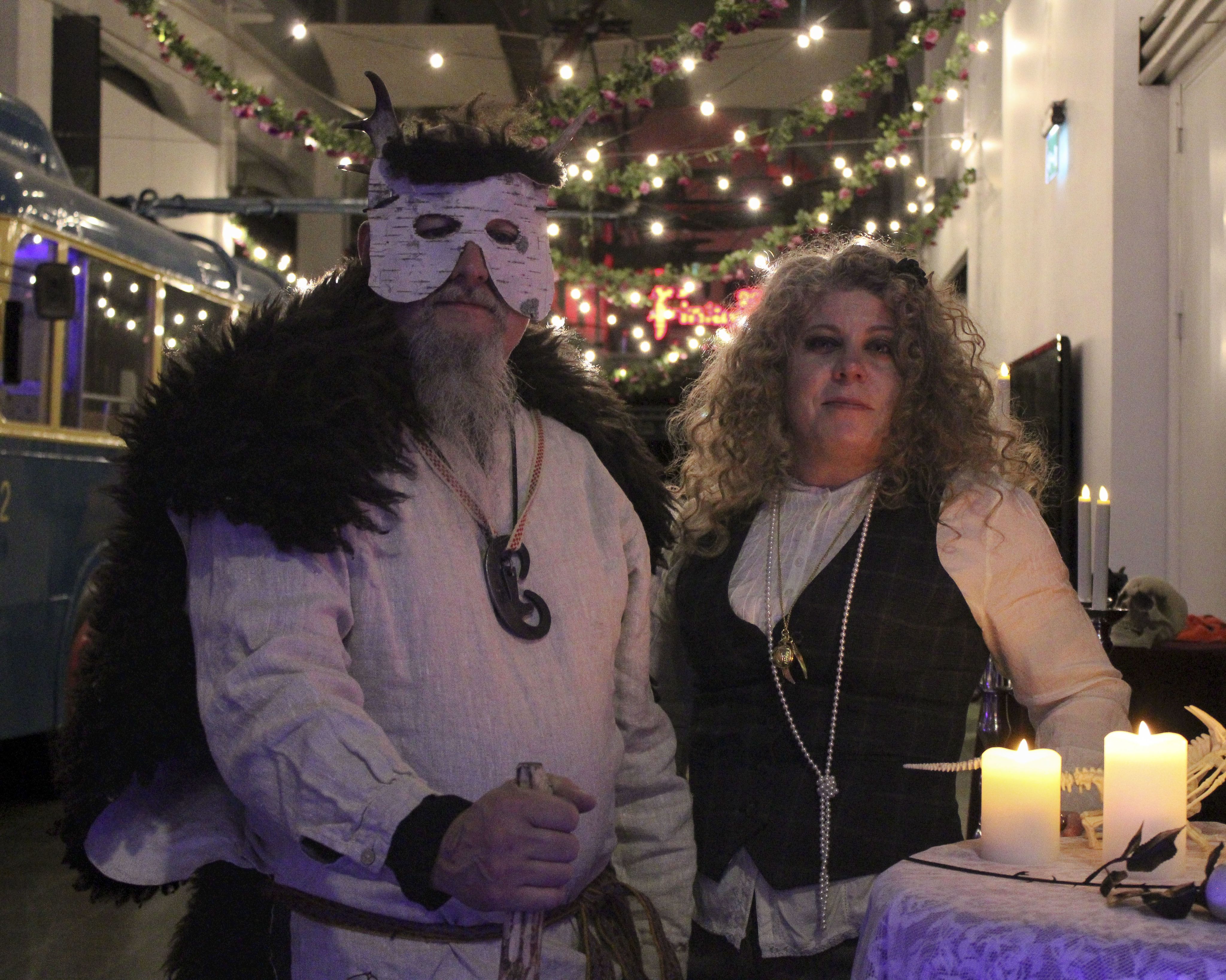Esitystä seurasivat kekripukiksi ja aikamatkaajaksi pukeutuneet Mikko ja Anne. Halloweenia pari ei vietä, vaan he julistavat itsensä kekrin sanansaattajiksi.