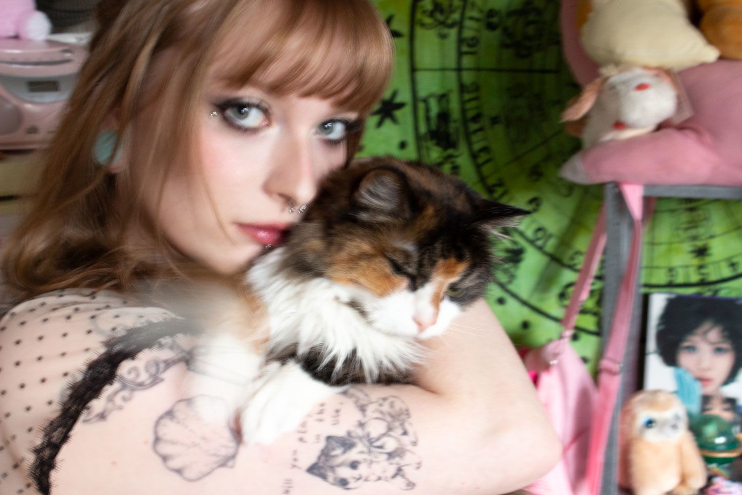 Ruskeanoranssi kissa, Valpuri, makoilee pedissään jähmettyneenä ilmekään värähtämättä. Pehmoleluja, nukkeja, maalauksia ja julisteita. Nopean ensivaikutelman perusteella koti on aivan asukkaansa näköinen.