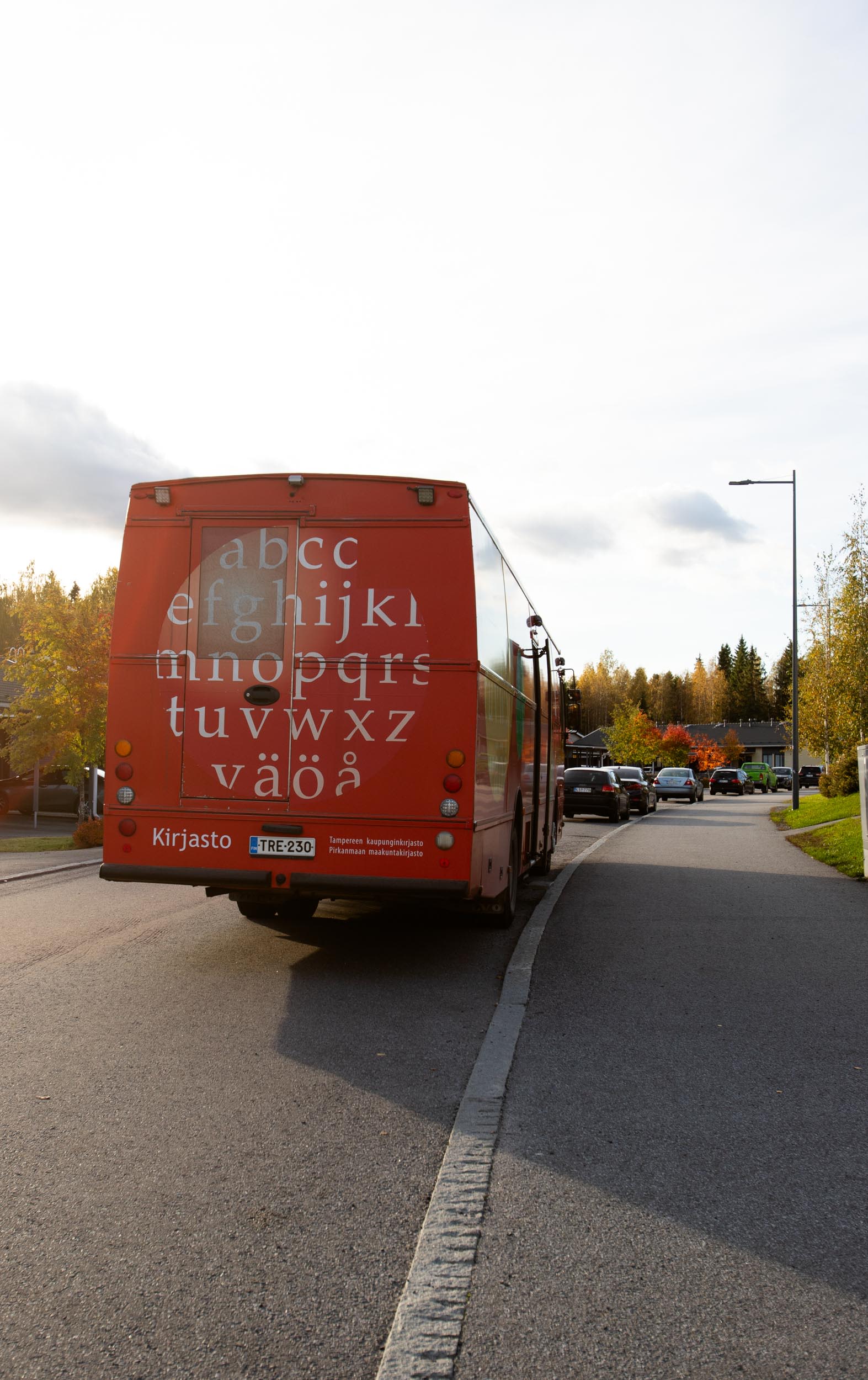 Alkava ruska ja värikkäät puutalot loistavat kilpaa Nekalassa. Väriloistoon yhtyy vielä pysäkilleen kaartava punainen kirjastoauto, Kustaa. Sen iltavuoro on alkanut iltapäivällä Tampereen pääkirjasto Metsolta.