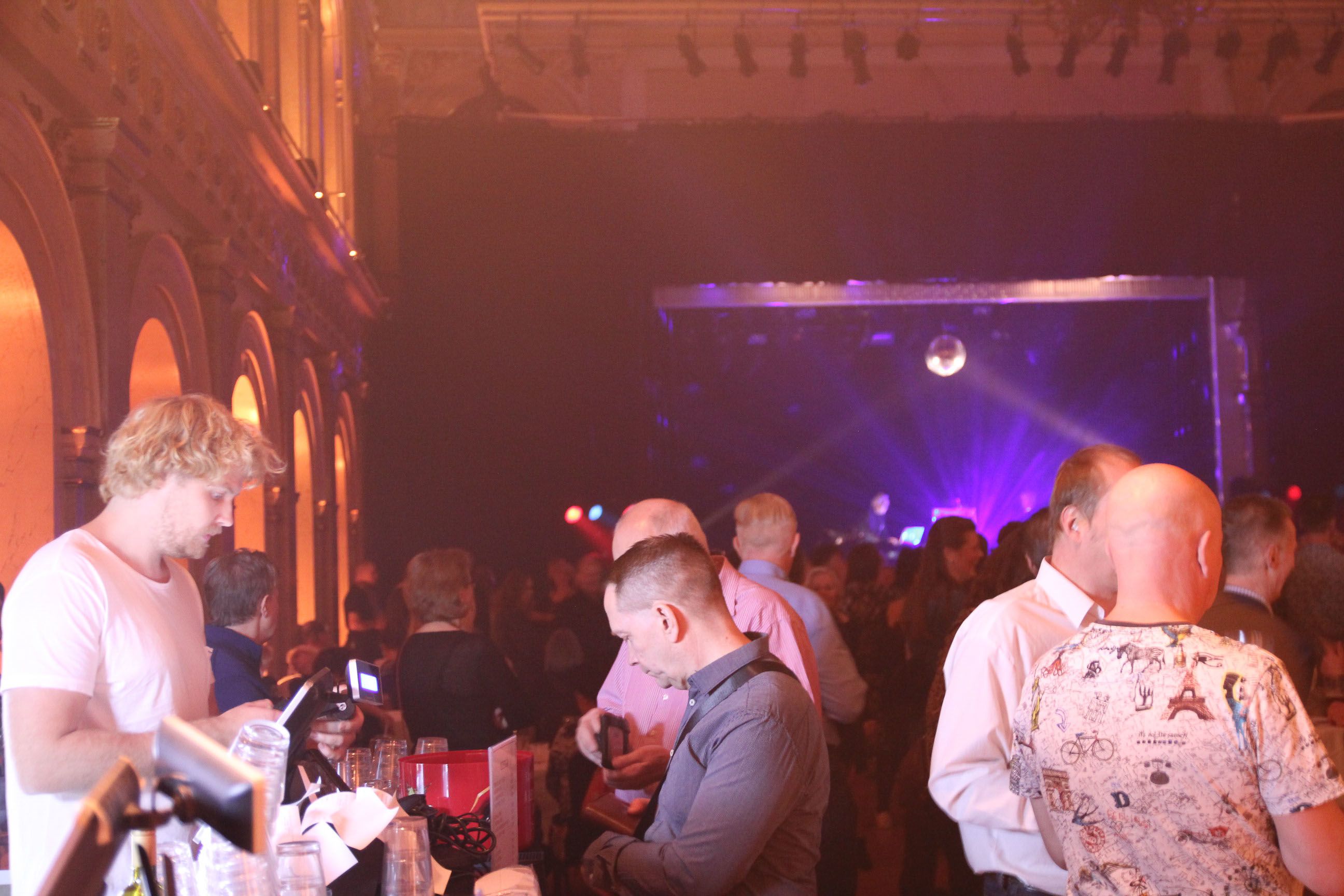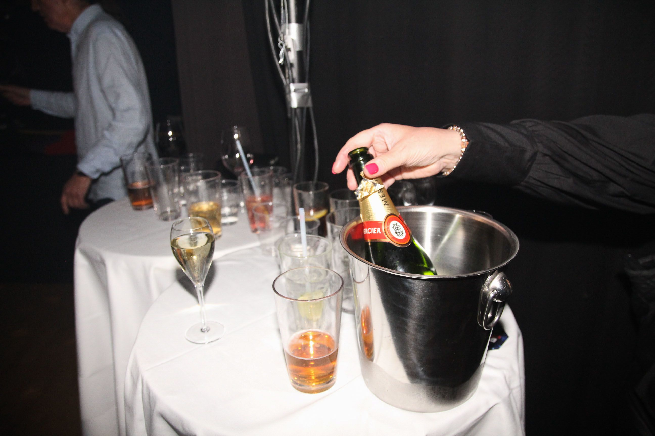 Baaritiskillä myydään juotavaa tiuhaan tahtiin. Erityisesti kuohuviiniä kuluu runsaasti.