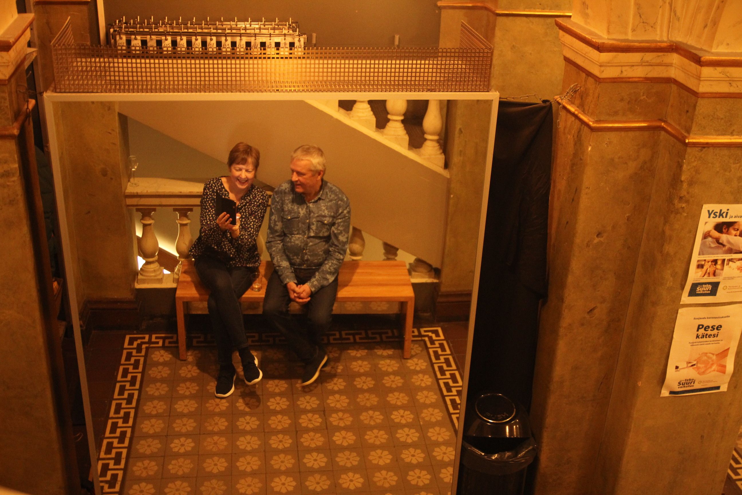 Tanssimisen lomassa on myös otettava taukoja. Hieman alle 70-vuotias Anu on istahtanut lepäämään aulan puolelle.