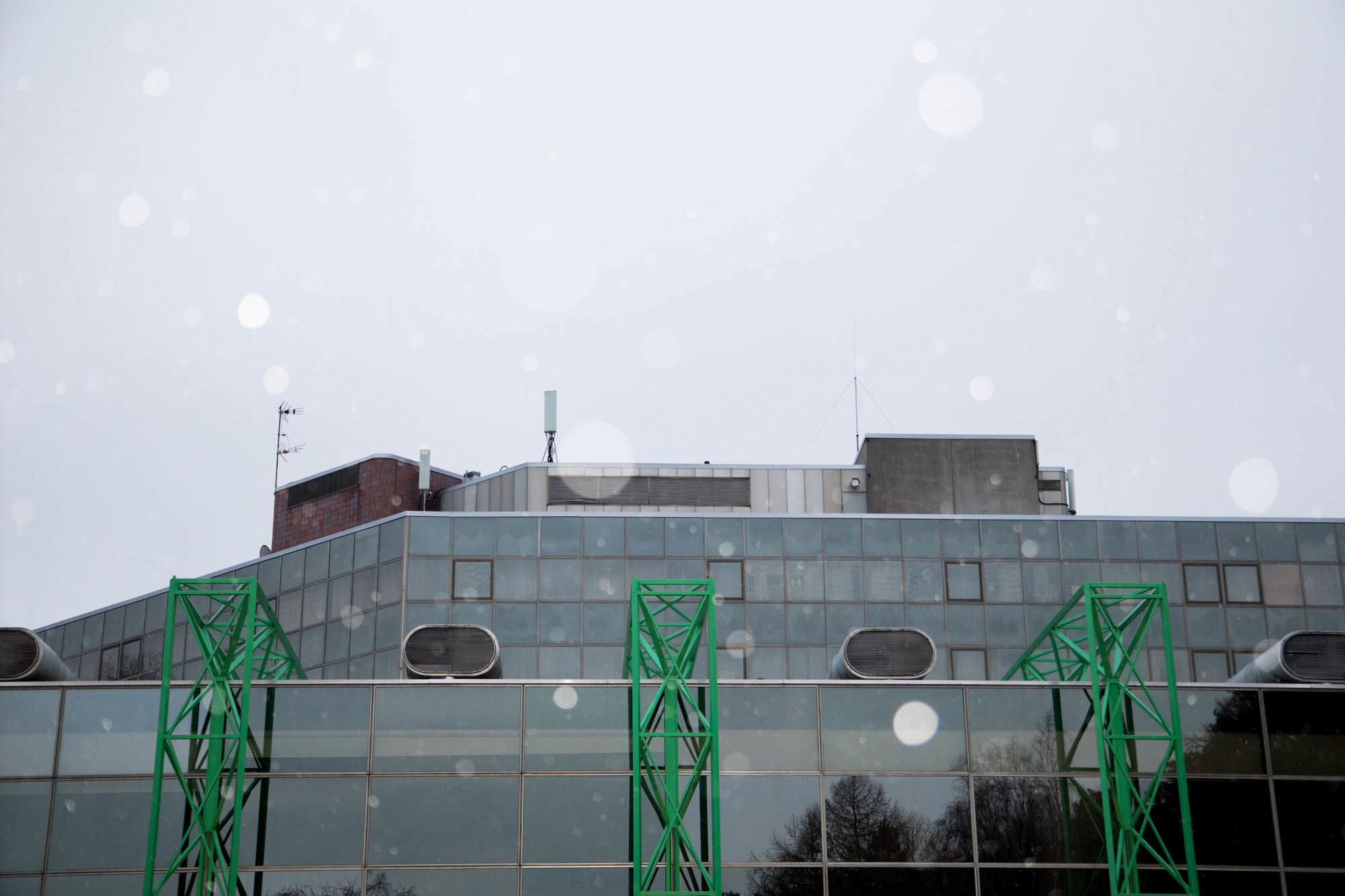 Toisen päällä on antenni. Rakennelman sisältä puhaltaa lämmintä ilmaa.