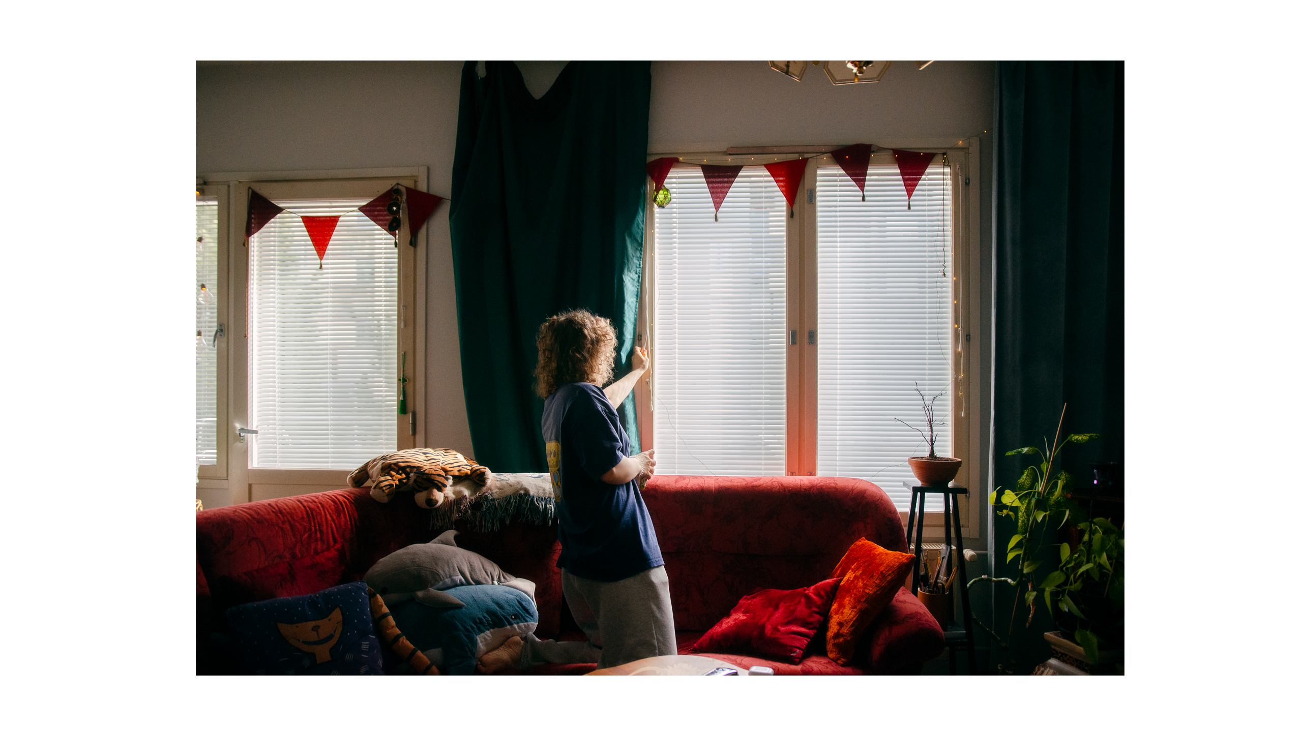 Elän kahtakymmenettäviidettä ikävuottani. Aivotutkimus kertoo aivojen etuotsalohkon kehittyvän täyteen kokoonsa 25 vuoden iässä. Kiinnostuin siitä, miltä nuoruuden ja aikuisuuden rajatilassa näyttää. Kuvasin parikymppisten elämää, koteja ja hetkiä.