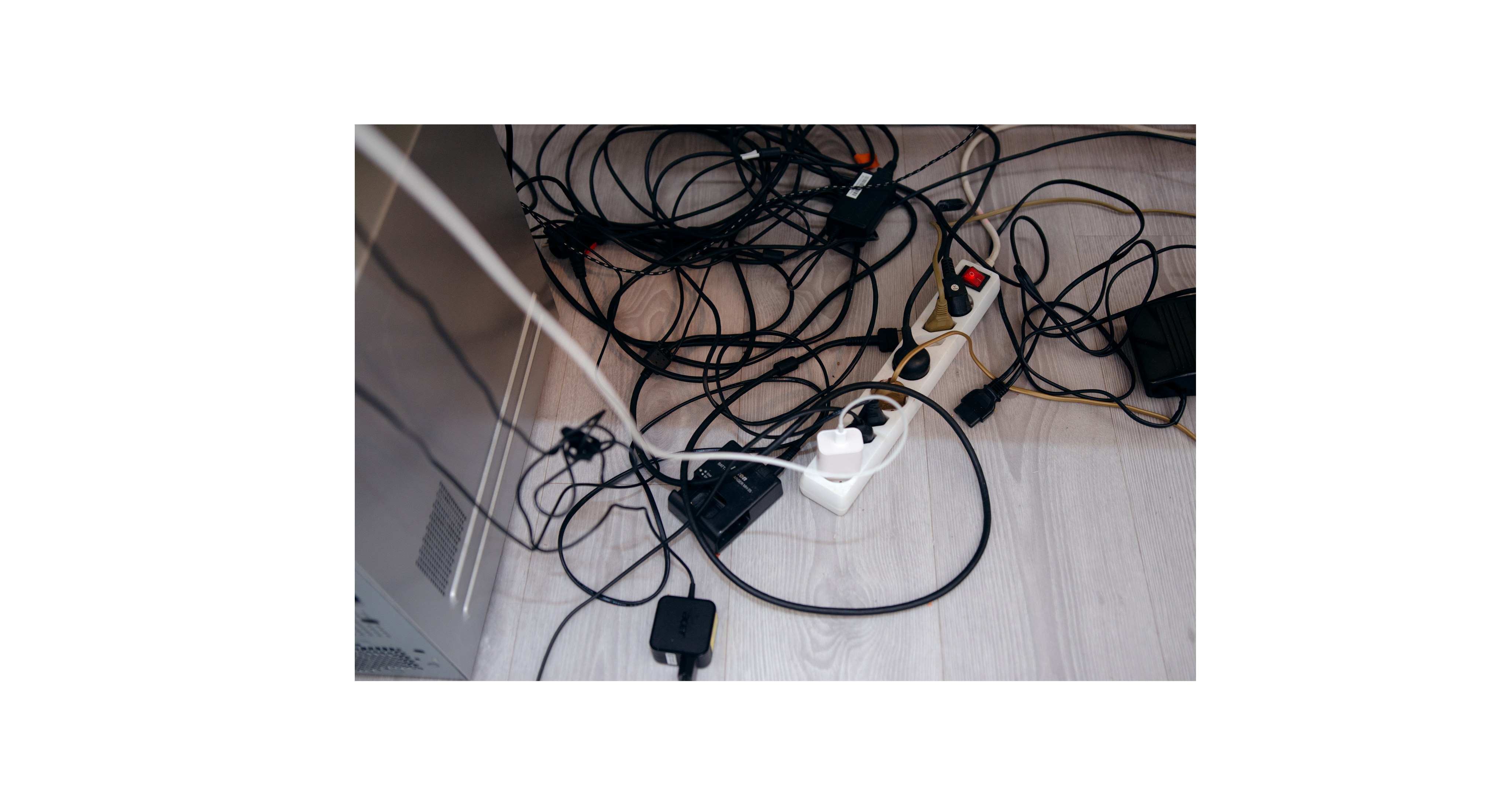 Johtoja vuokra-asuntoni lattialla.