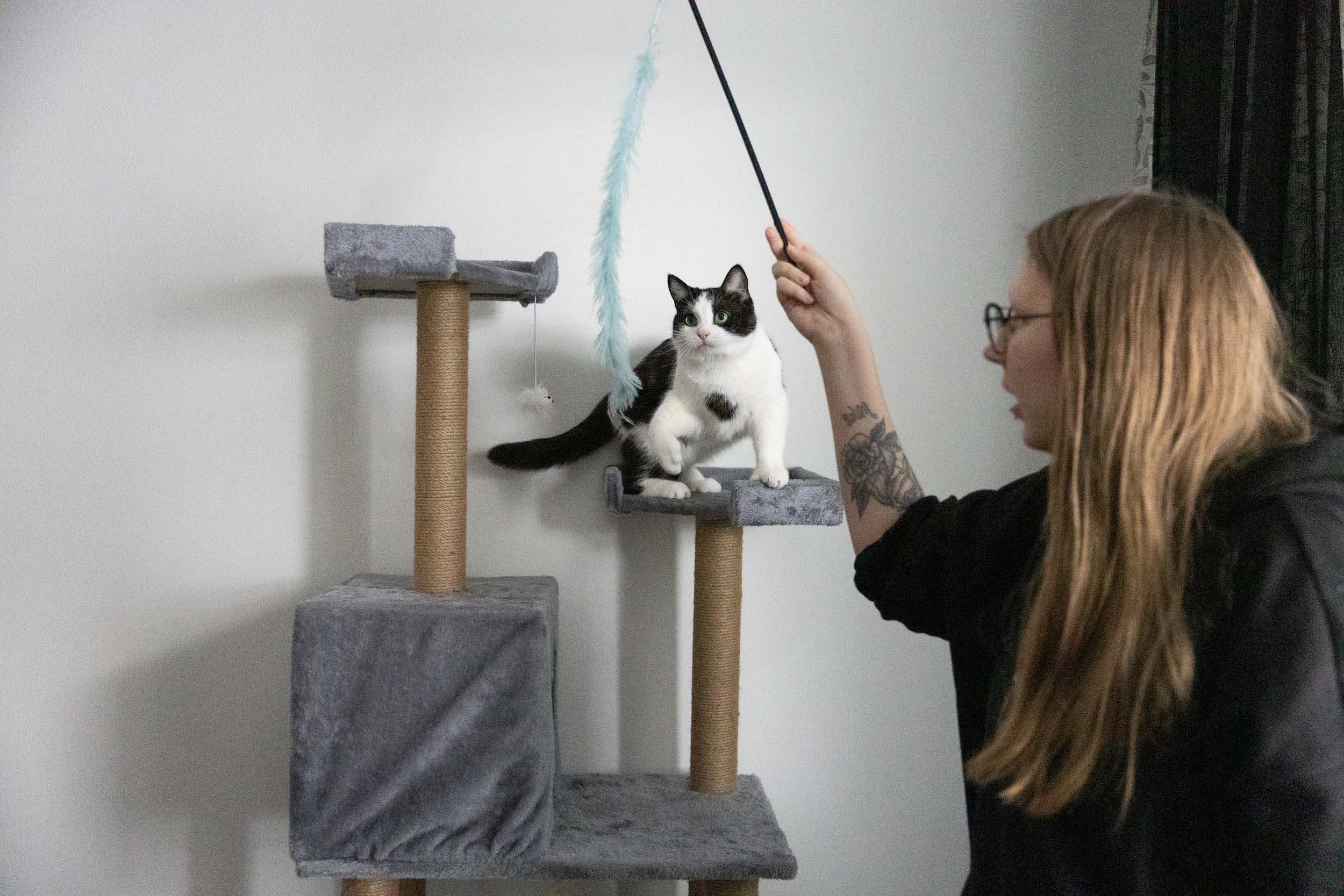 Erika Paulaniemi avaa oven varovasti, ettei muutama viikko sitten kotiutunut Nipsu-kissa pääsisi livahtamaan rappukäytävään.