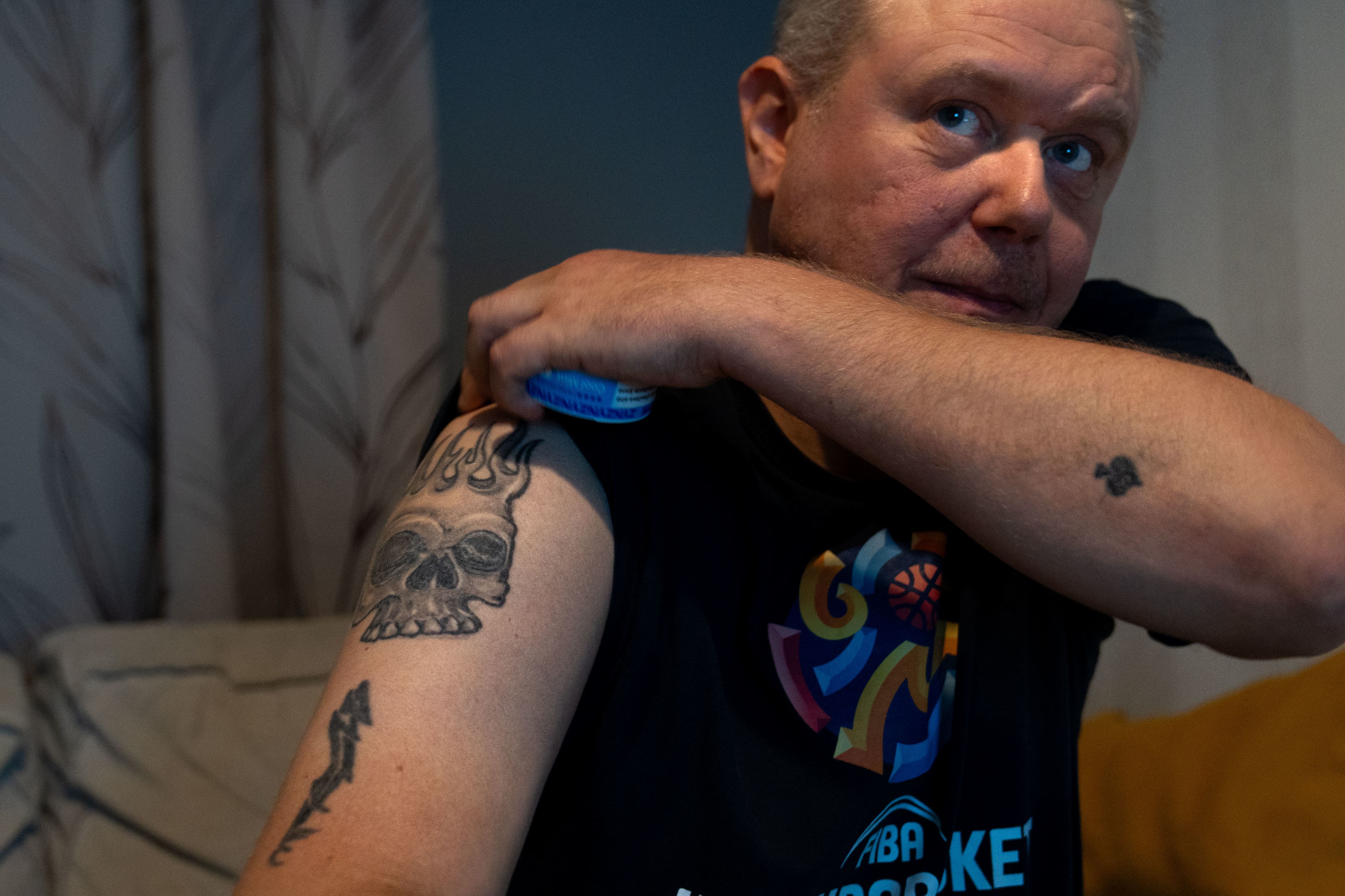 Osa Mikon tatuoinneista on tehty vankilassa. – Vankilassa joku aina osaa tehdä tatuointeja, tai luulee osaavansa.