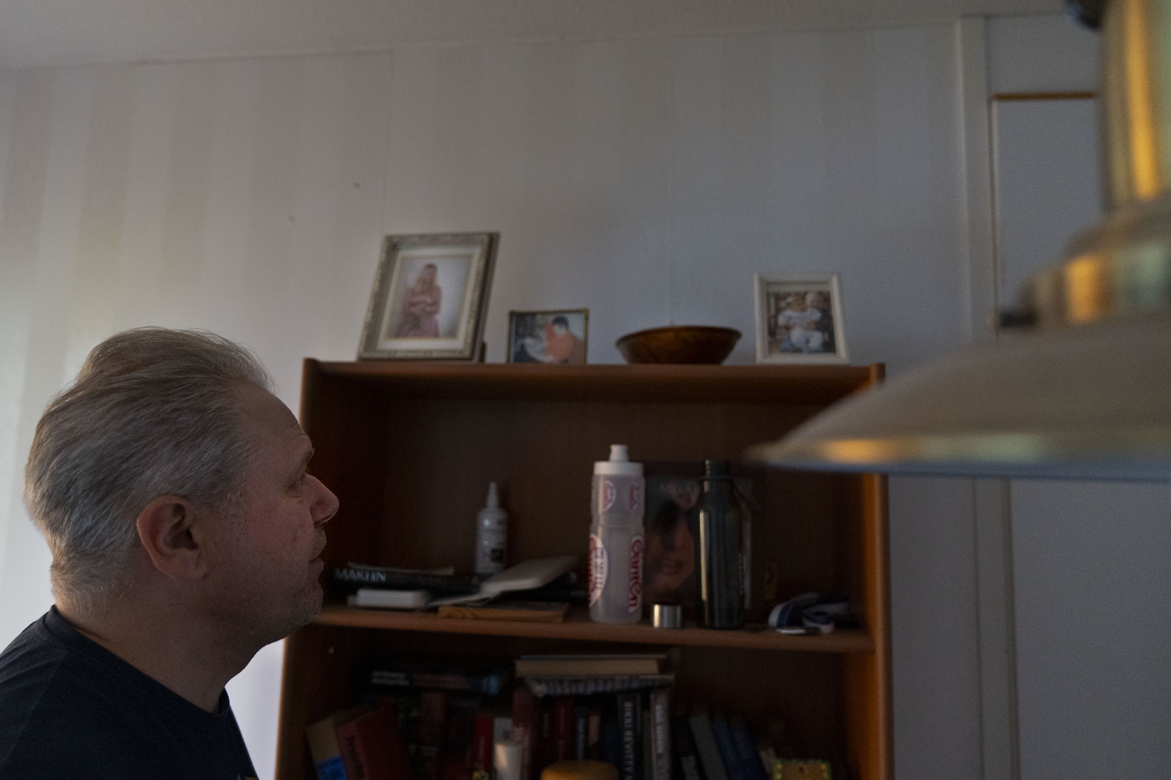 Kertoessaan väleistään nuorimman lapsen kanssa Mikon kasvoille nousee pieni hymy – ainut haastattelun aikana.