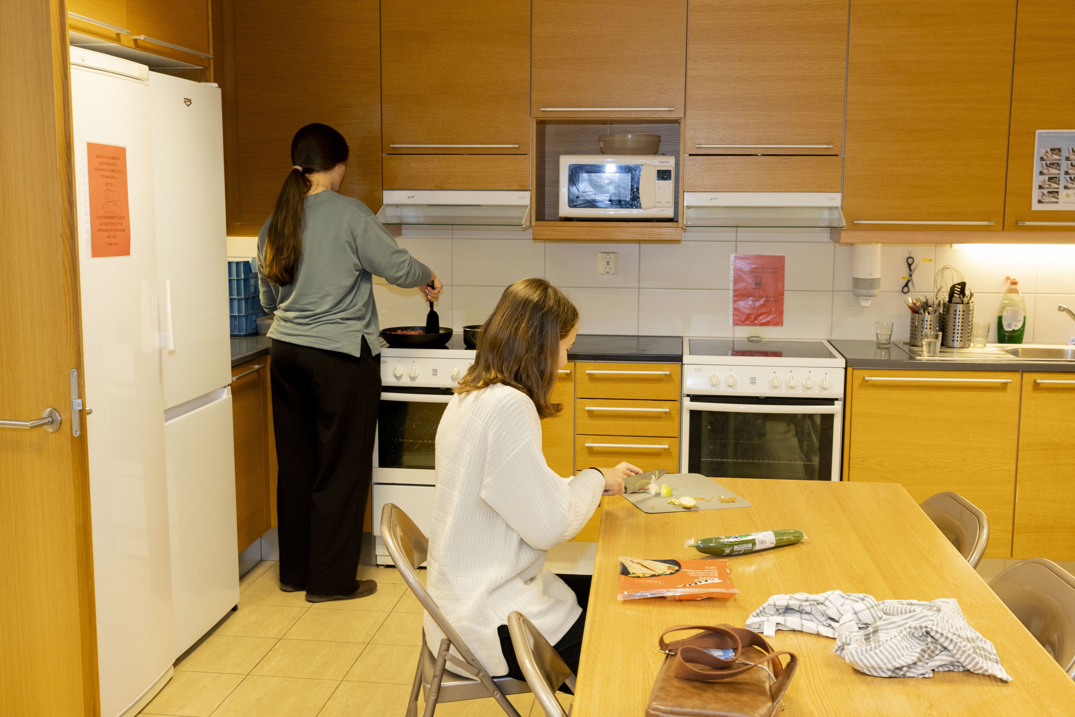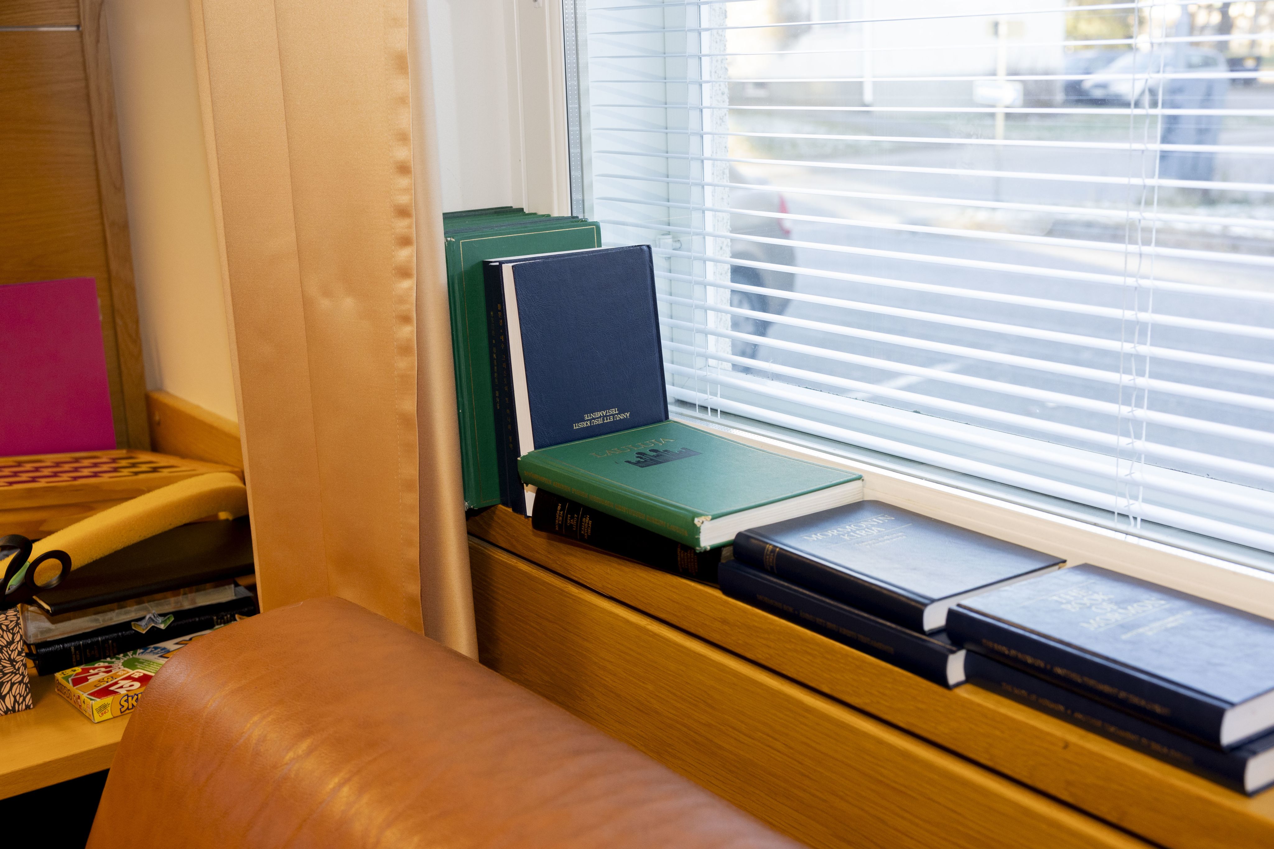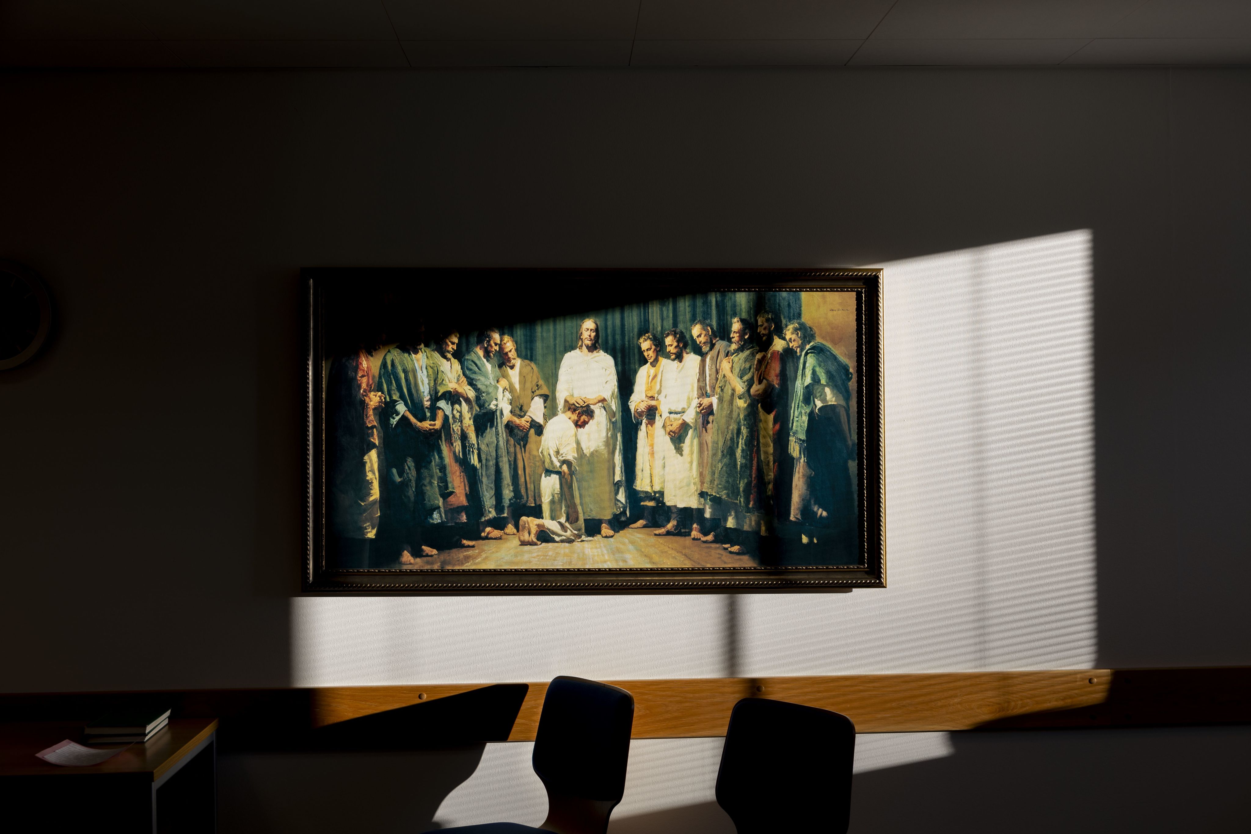 Aloitamme kierroksen kirkon perältä kodikkaasta oleskeluhuoneesta. Tilassa on suuri sohvanurkkaus, biljardipöytä ja piirustustarvikkeita. Ikkunalaudalla lojuu Mormonin kirjoja odottamassa seuraavaa lukijaa. Tila on selvästi suunniteltu kohtaamisille.