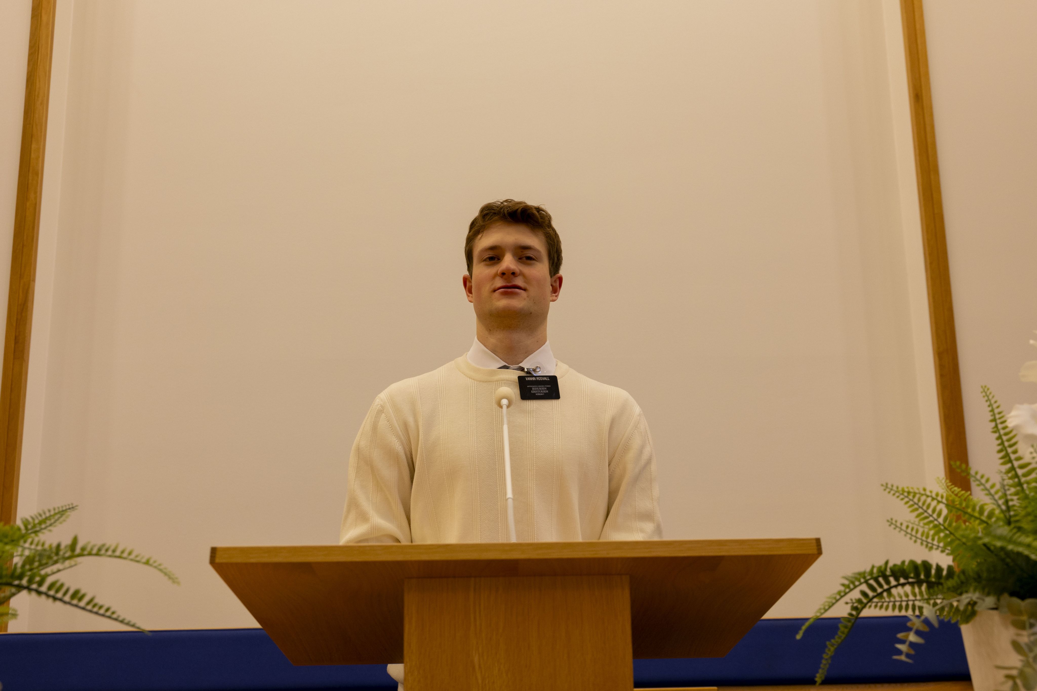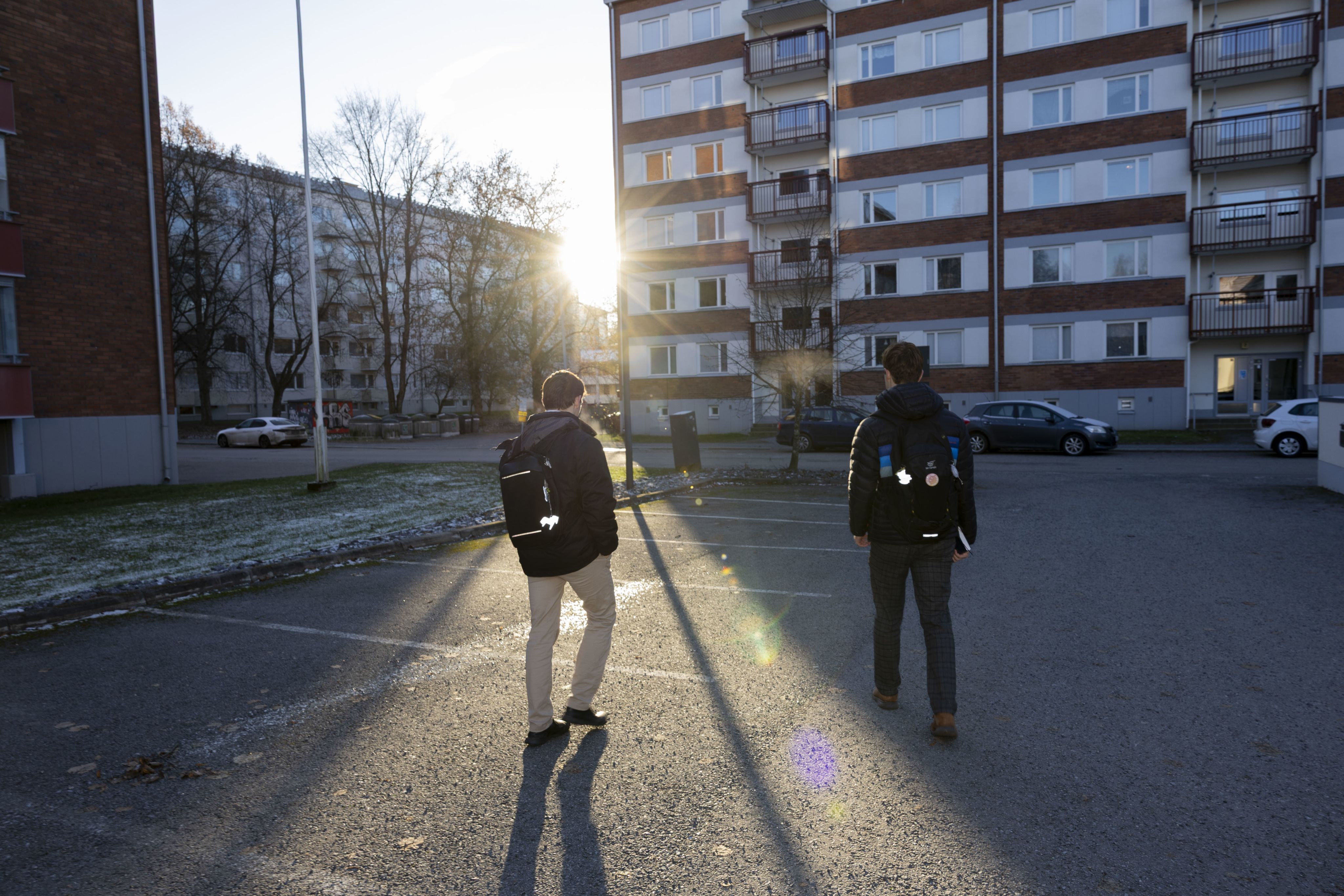 Ovi avautuu, ja meidät vastaanottavat kaksi nuorta miestä – vanhin Rosvall ja vanhin Andrews. Mustat nimilaput kiiltävät vaaleissa kauluspaidoissa, hymyt ovat varmat ja kohteliaat. Molemmat ovat kotoisin Yhdysvalloista, ja Jumalan kutsu on tuonut heidät Suomeen kahdeksi vuodeksi jakamaan Pyhää sanomaa.
