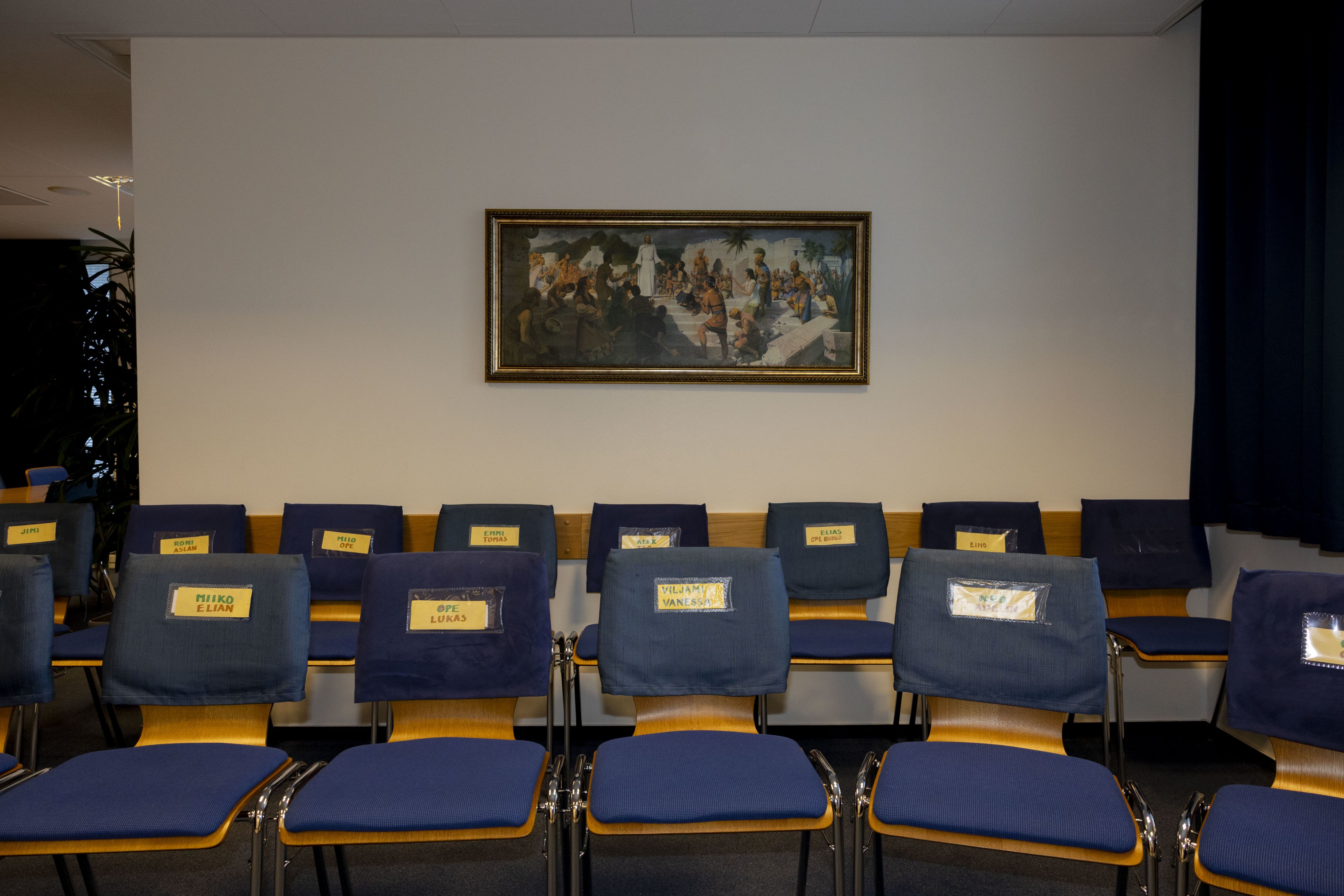Kirkon toisesta kerroksesta löytyy lisää työ- ja luokkahuoneita.