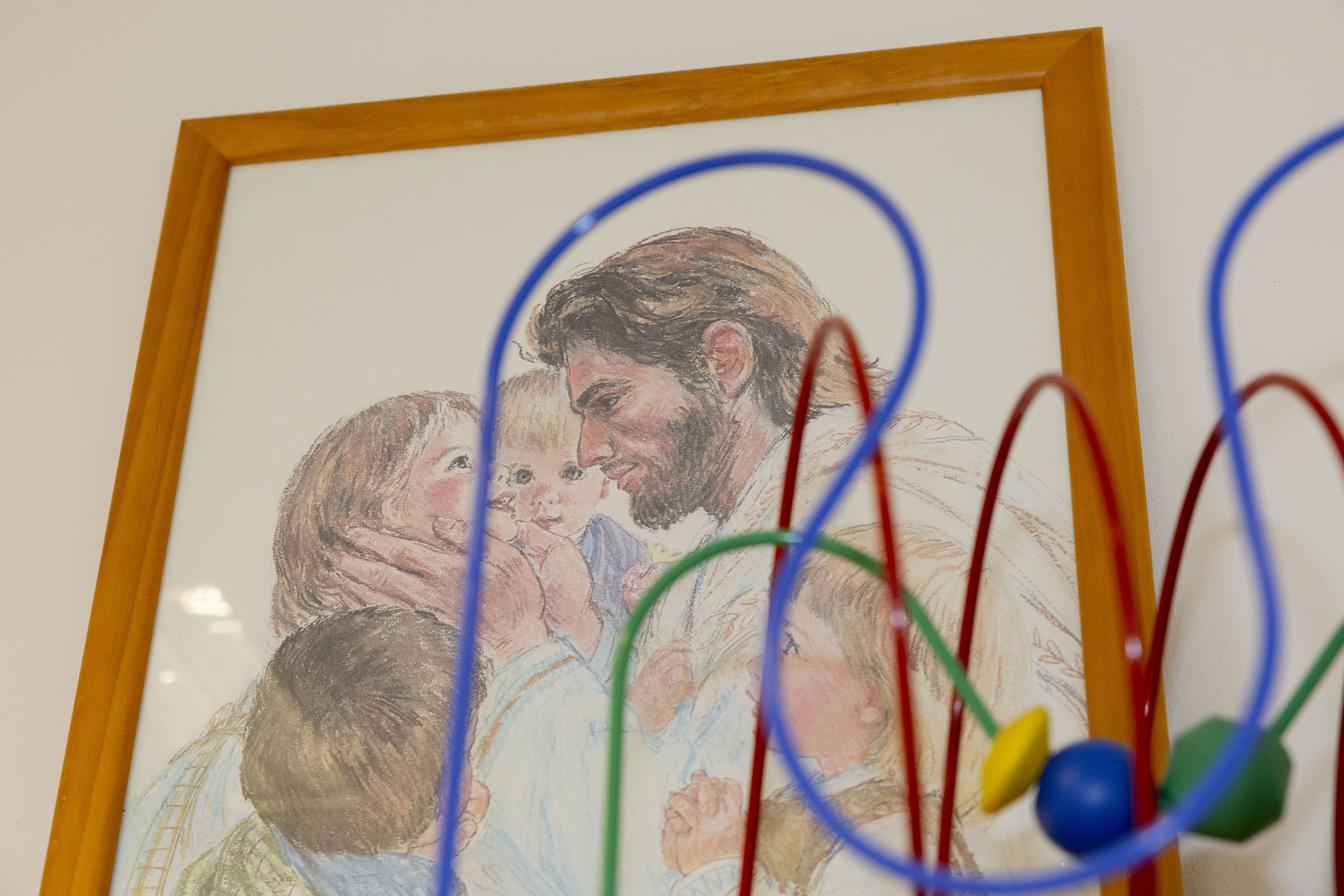Seinillä näkyy kirkon profeettojen muotokuvia ja lisää maalauksia, jotka toimivat samalla opetuksen välineinä. Musiikin ja laulamisen merkitys korostuu eikä ihme, sillä lähes jokaisesta luokkahuoneesta löytyy piano.