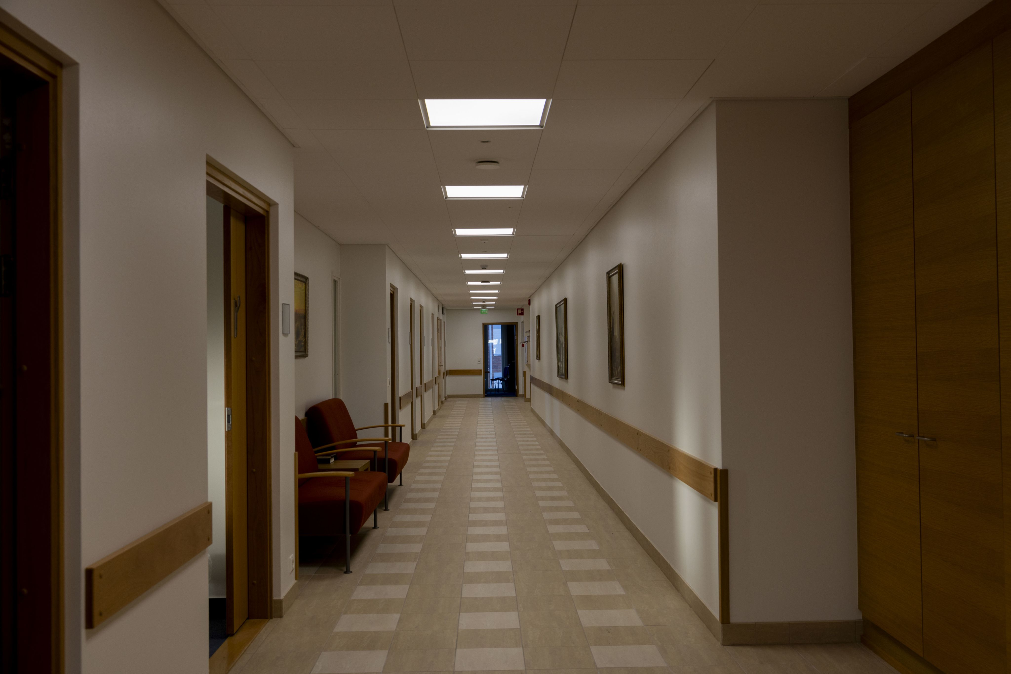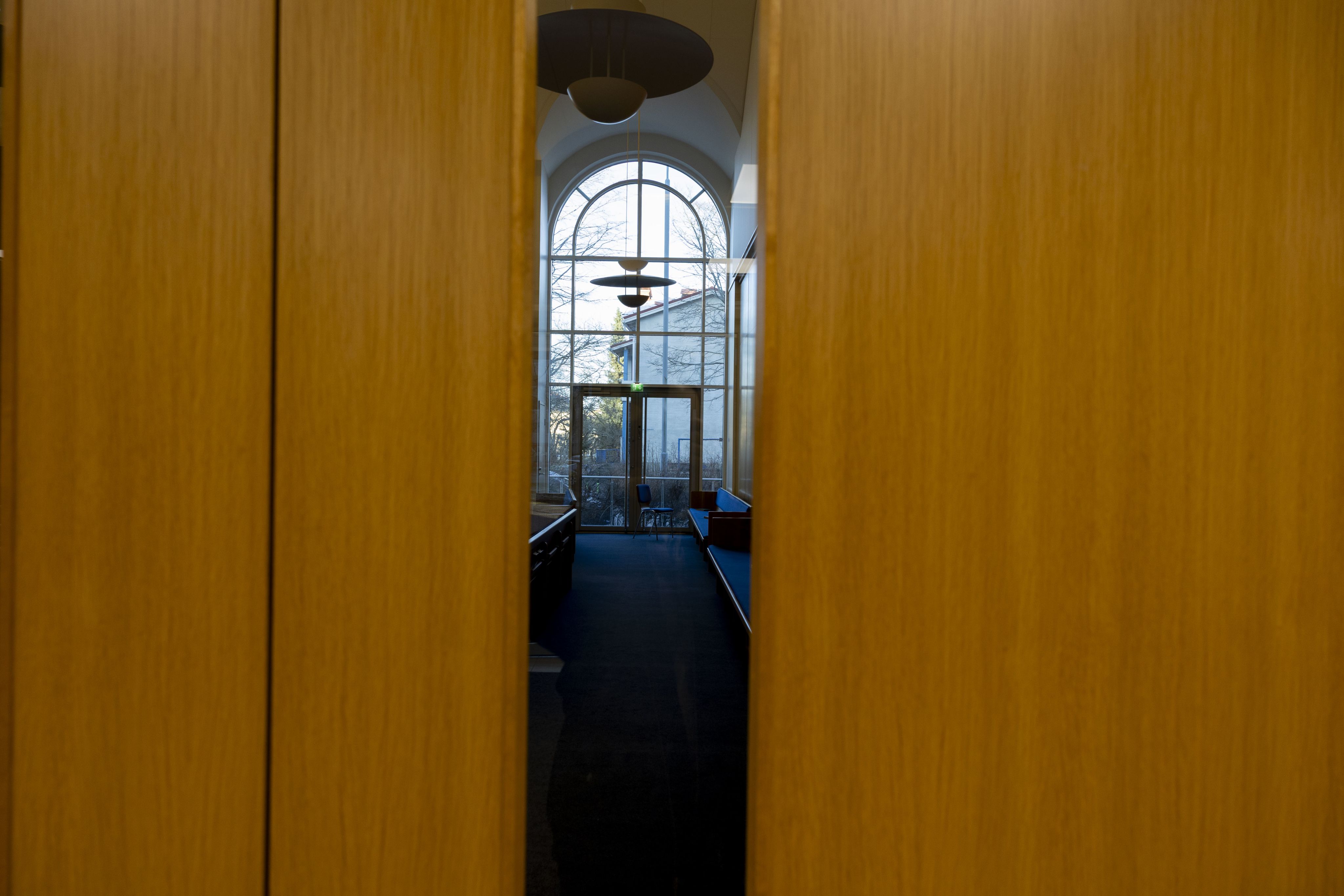 Astumme sisään pitkään valoisaan käytävään. Seinillä roikkuu uskonnollisia maalauksia ja nuorille suunnattuja tapahtumakutsuja. Tunnelma on hiljainen ja harras eikä meidän lisäksemme paikalla ole muita.