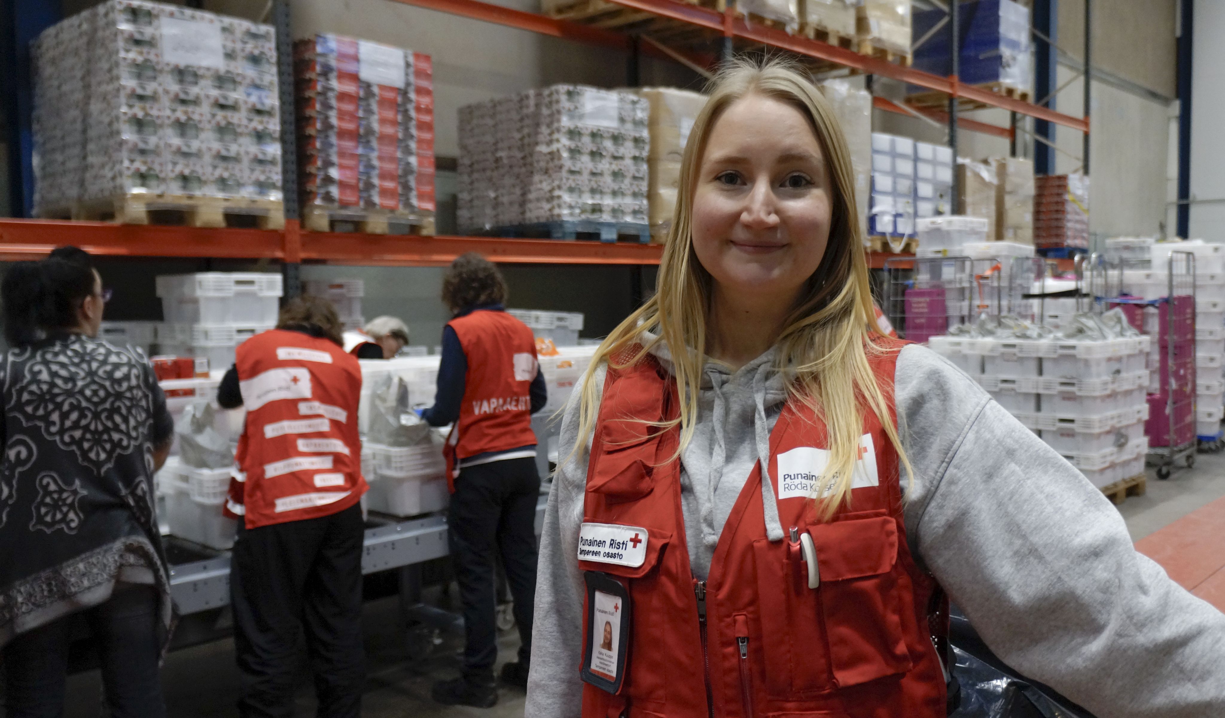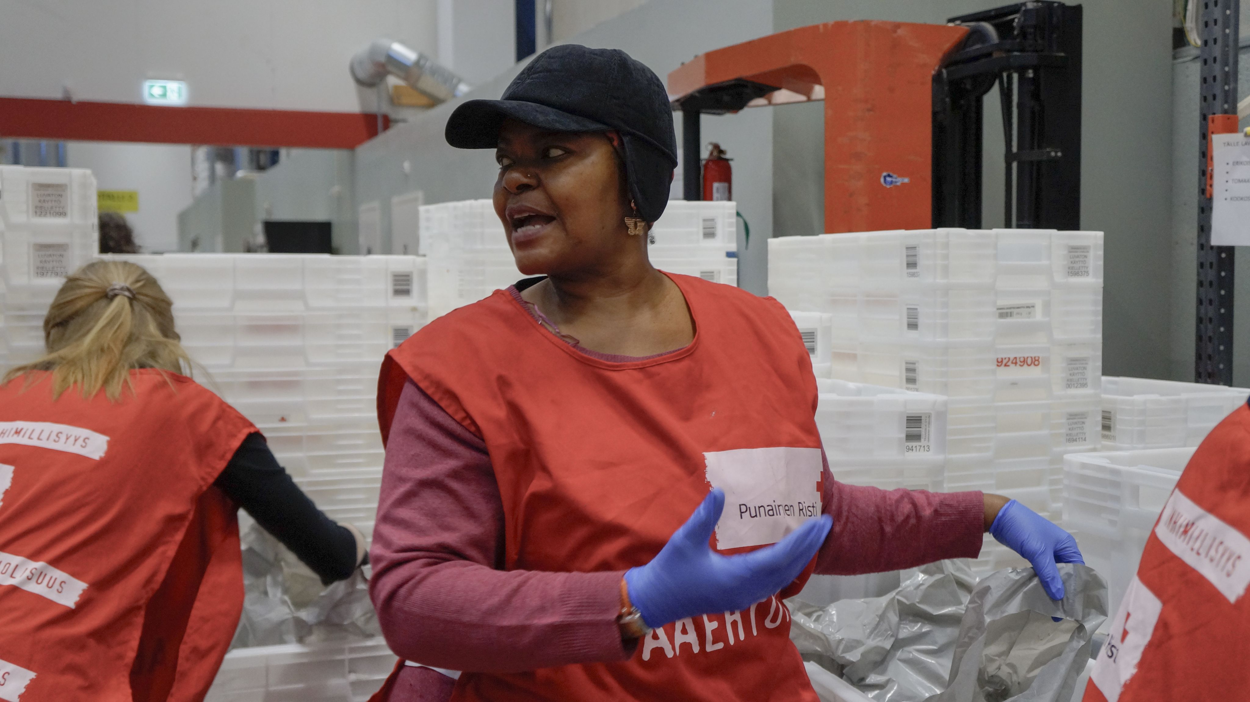 Vihanneksia lajitteleva Jenni Jääskeläinen on ruoka-avussa toista kertaa.
