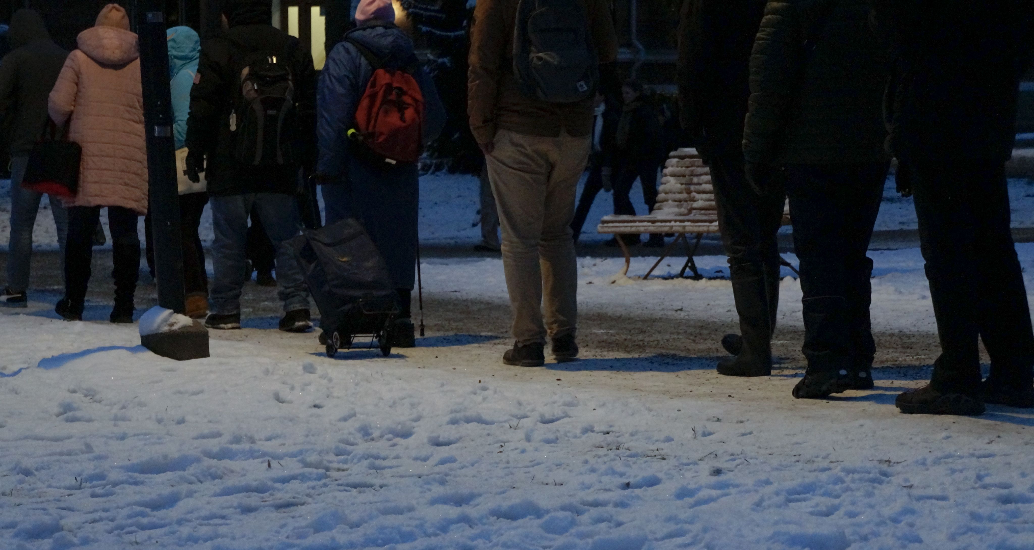 Tampereen Nekalassa sijaitsevan suuren tehdasmaisen rakennuksen ulkopuolella on jonoa. Ihmiset ovat pakkautuneet seinän vierustalle. Vierustovereiden kanssa käydään lyhyitä keskusteluja.