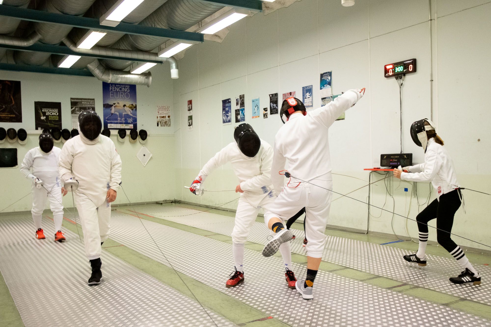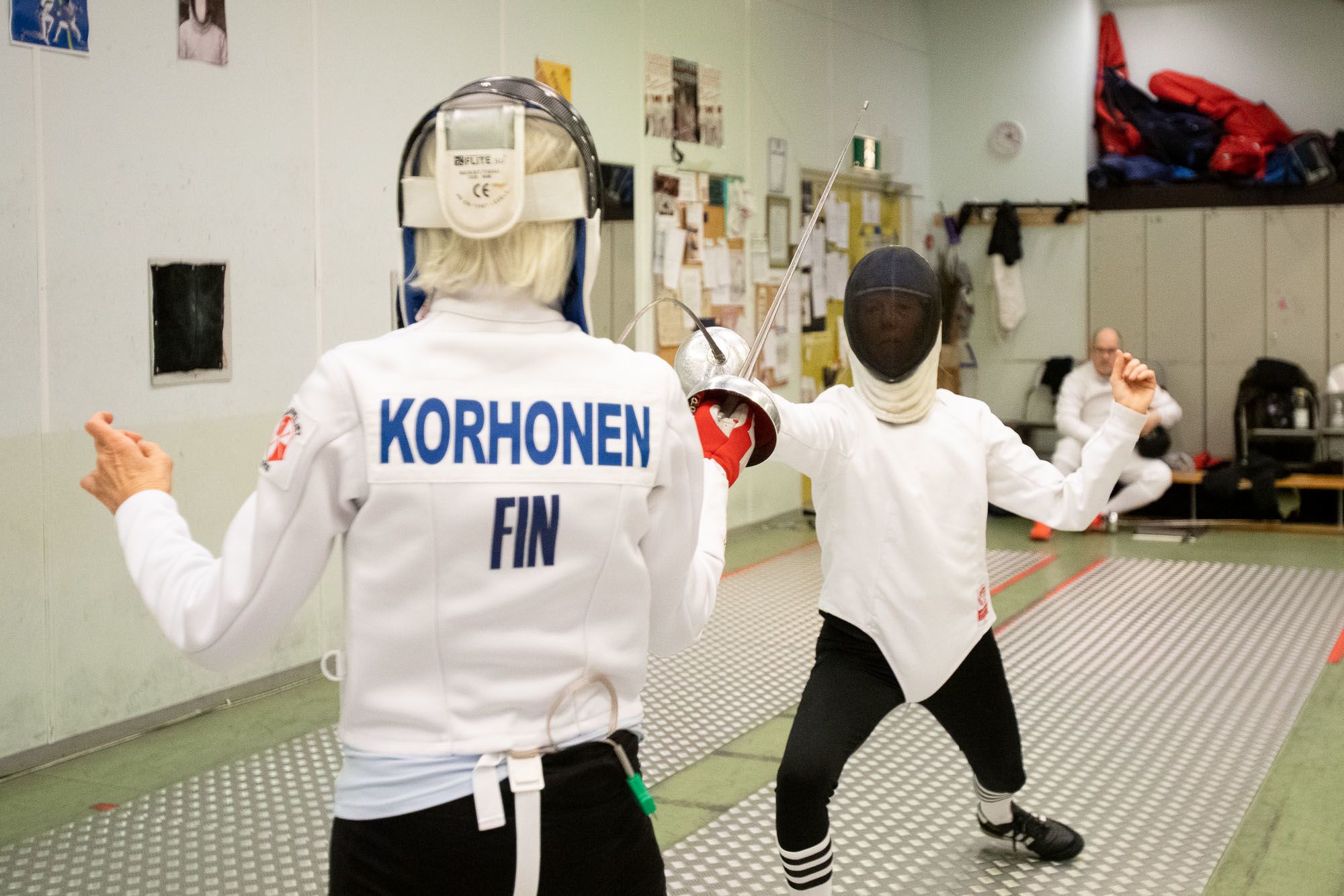Miekat kalisevat, kun miekkailuseura Kalpaveljet harjoittelee Tampereen Nääshallissa. Sunnuntai-iltapäivänä halliin kokoontui kymmenkunta treenaajaa harjoittelemaan lajin tekniikkaa, sekä ottamaan toisistaan mittaa miekkailussa. Seuran ikähaarukka on laaja, ryhmiä löytyy kaikille ikäluokille lapsista senioreihin.