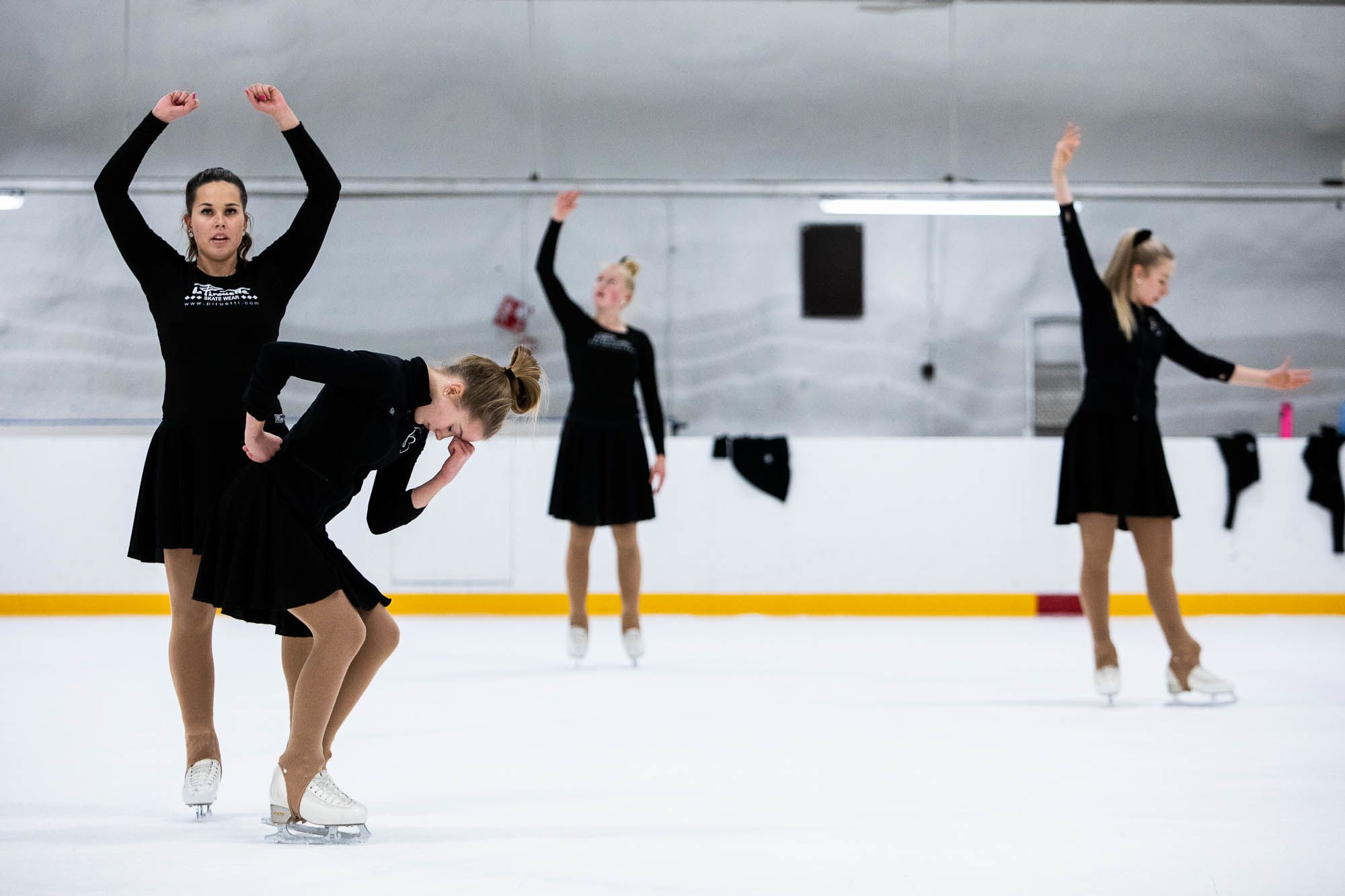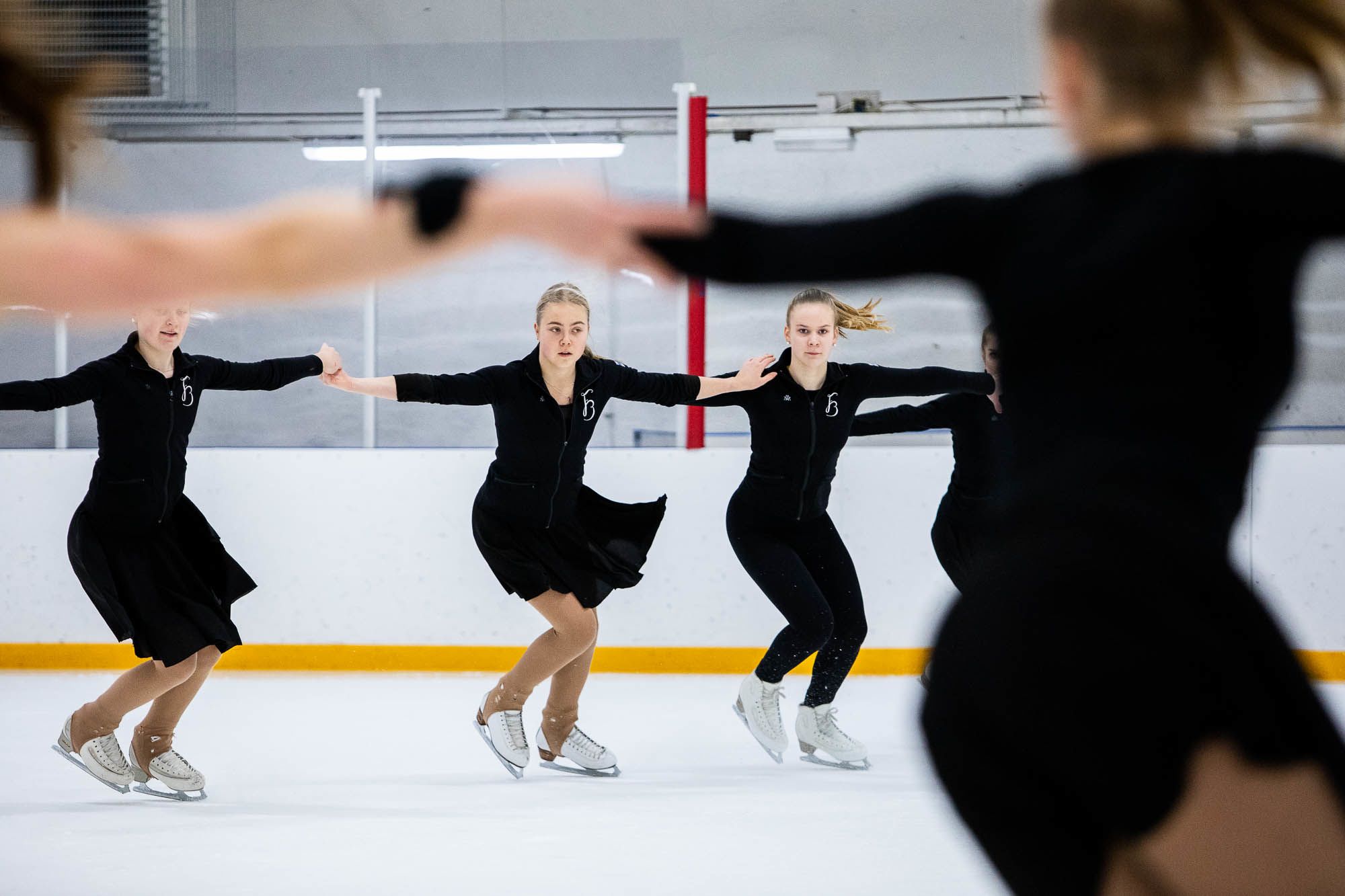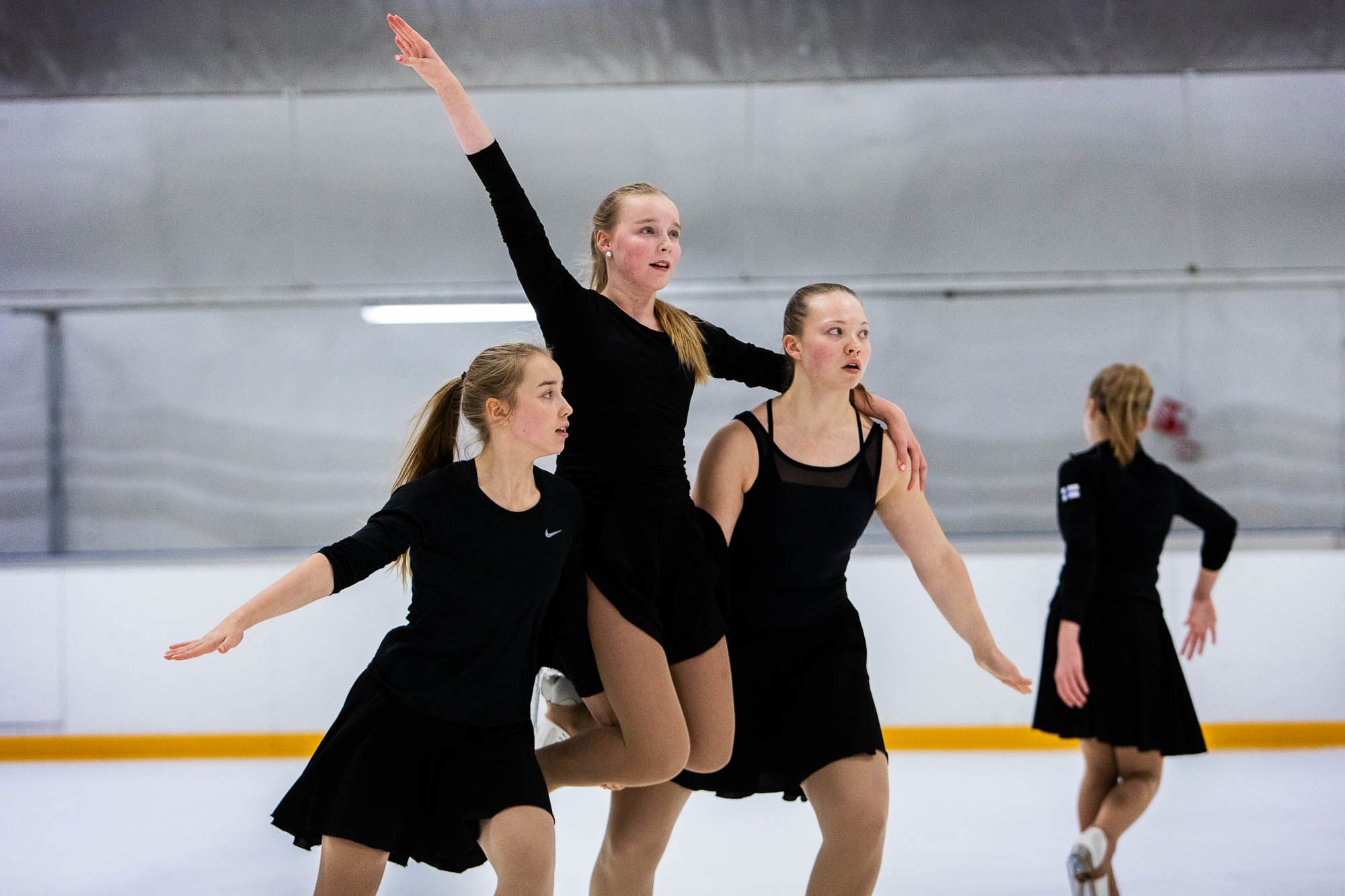 Tapparan muodostelmaluistelun joukkue FireBladesin harjoitukset Hervannan jäähallissa. Kuvassa vasemmalta oikealle Viivi Tuominen, Veera Laakkonen, Ella Suominen ja Wilma Suuriniemi.
