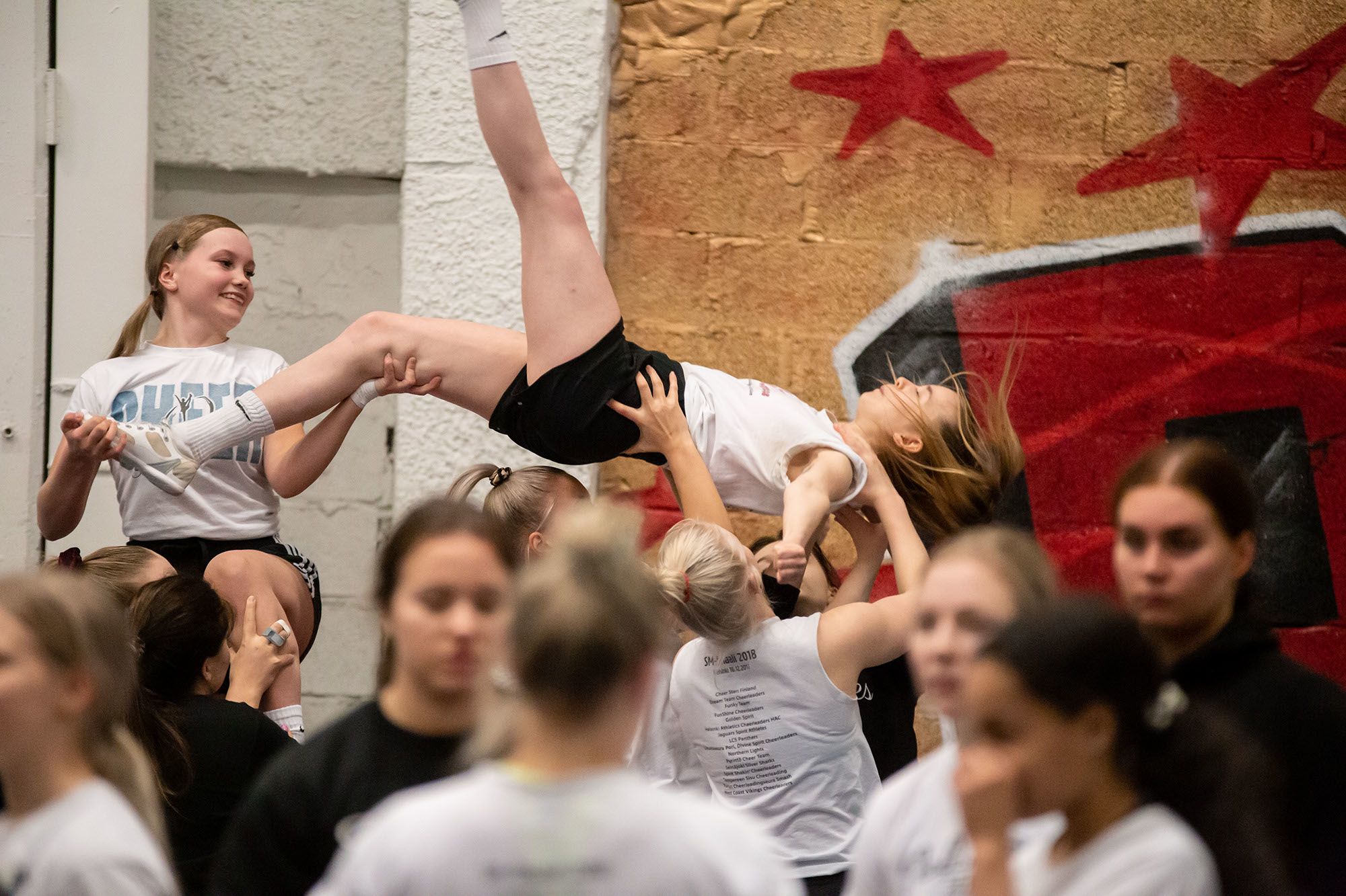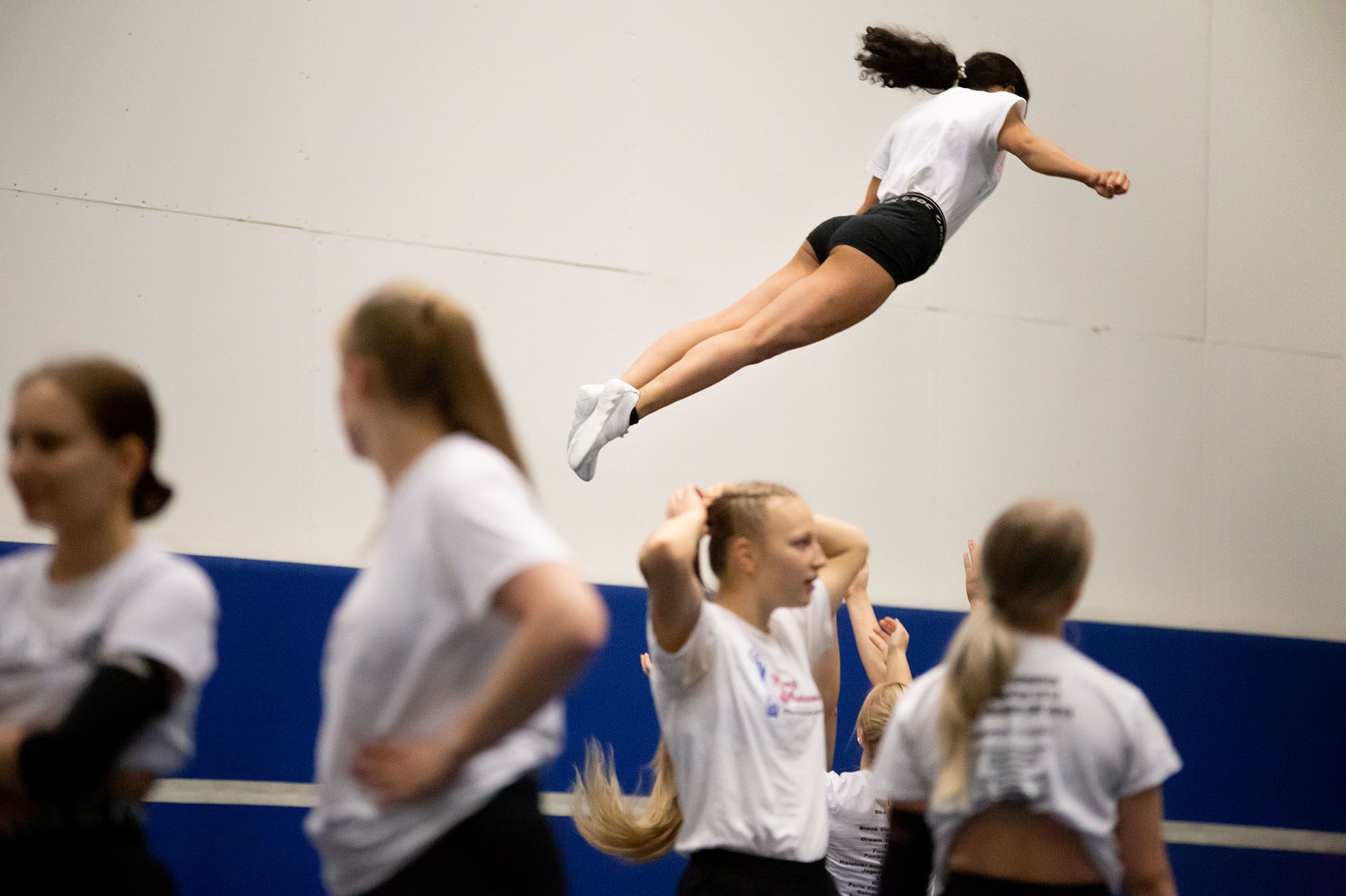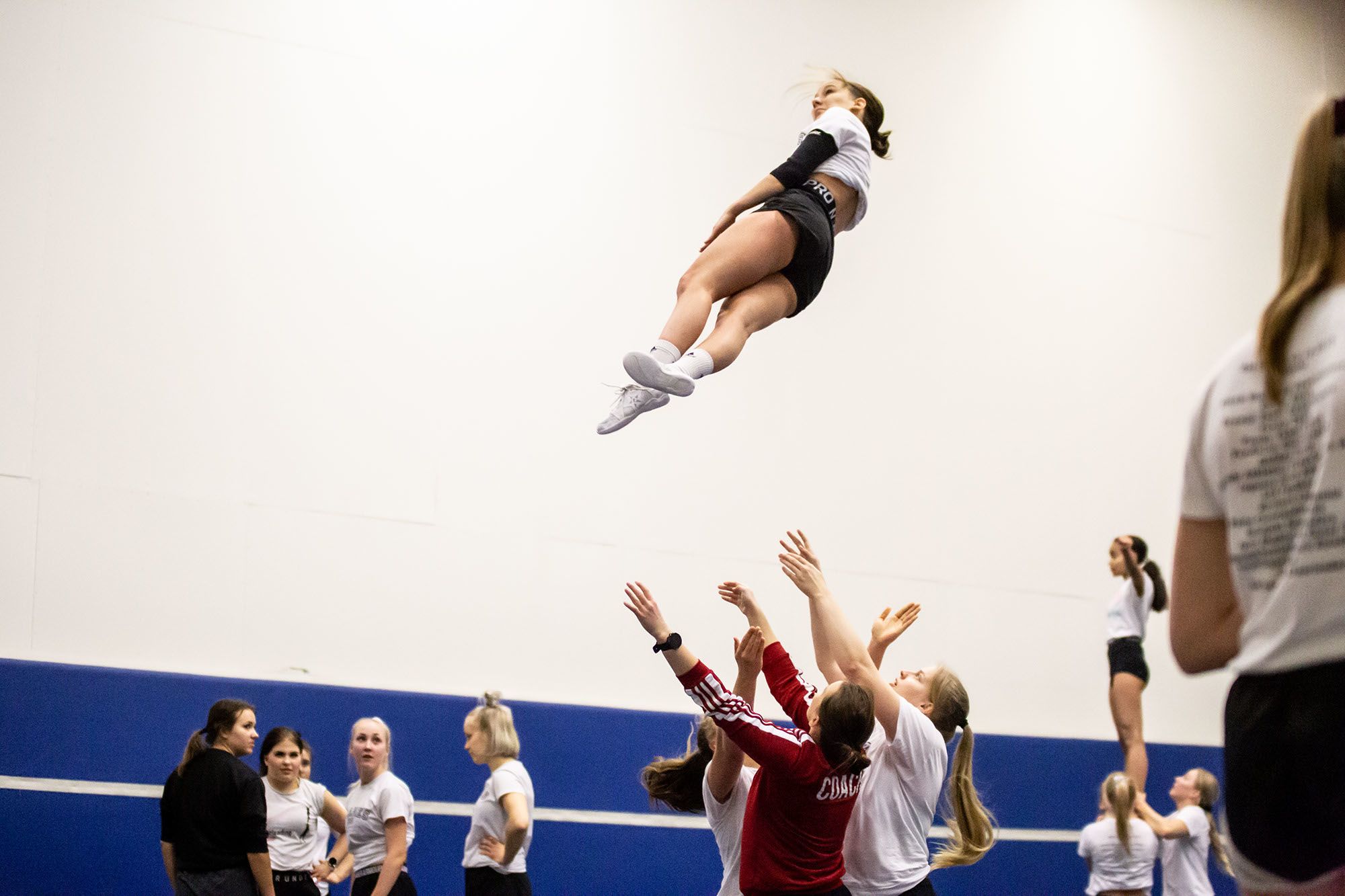 Cheerleading vaatii saumatonta yhteistyötä ja tiukkaa keskittymistä. Pyrinnön naisten edustusjoukkueen harjoituksissa joukkuetoverit lentävät kerta kerran jälkeen hurjannäköisesti ilmaan, mutta toiset ottavat kiinni yhtä monta kertaa.