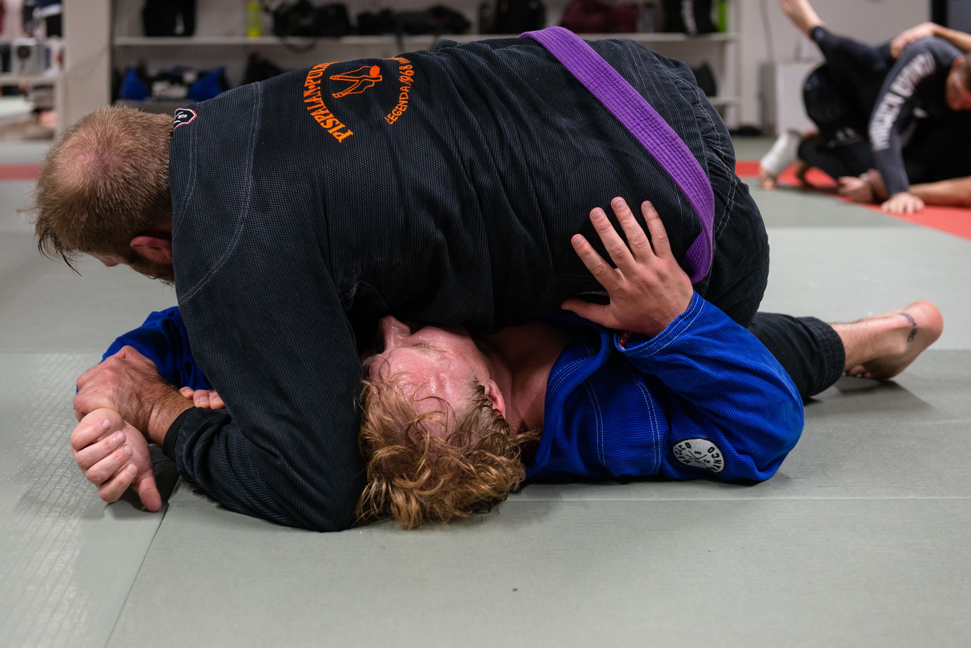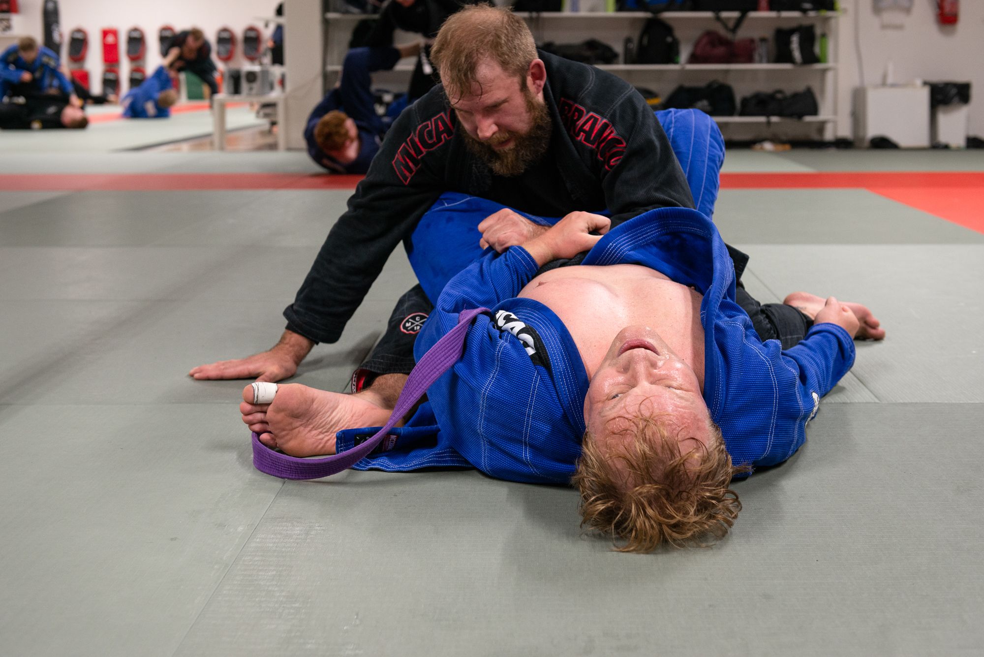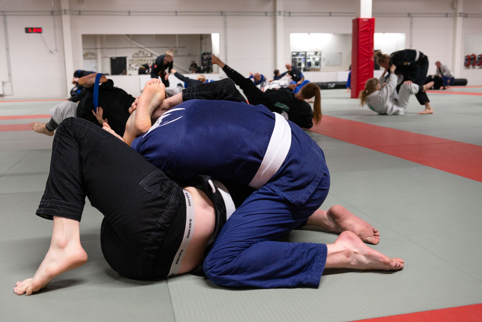 Brasilialaisen jujutsun harrastajat Matti Vuorinen ja Santeri Tuckett sparrasivat kovaa.
