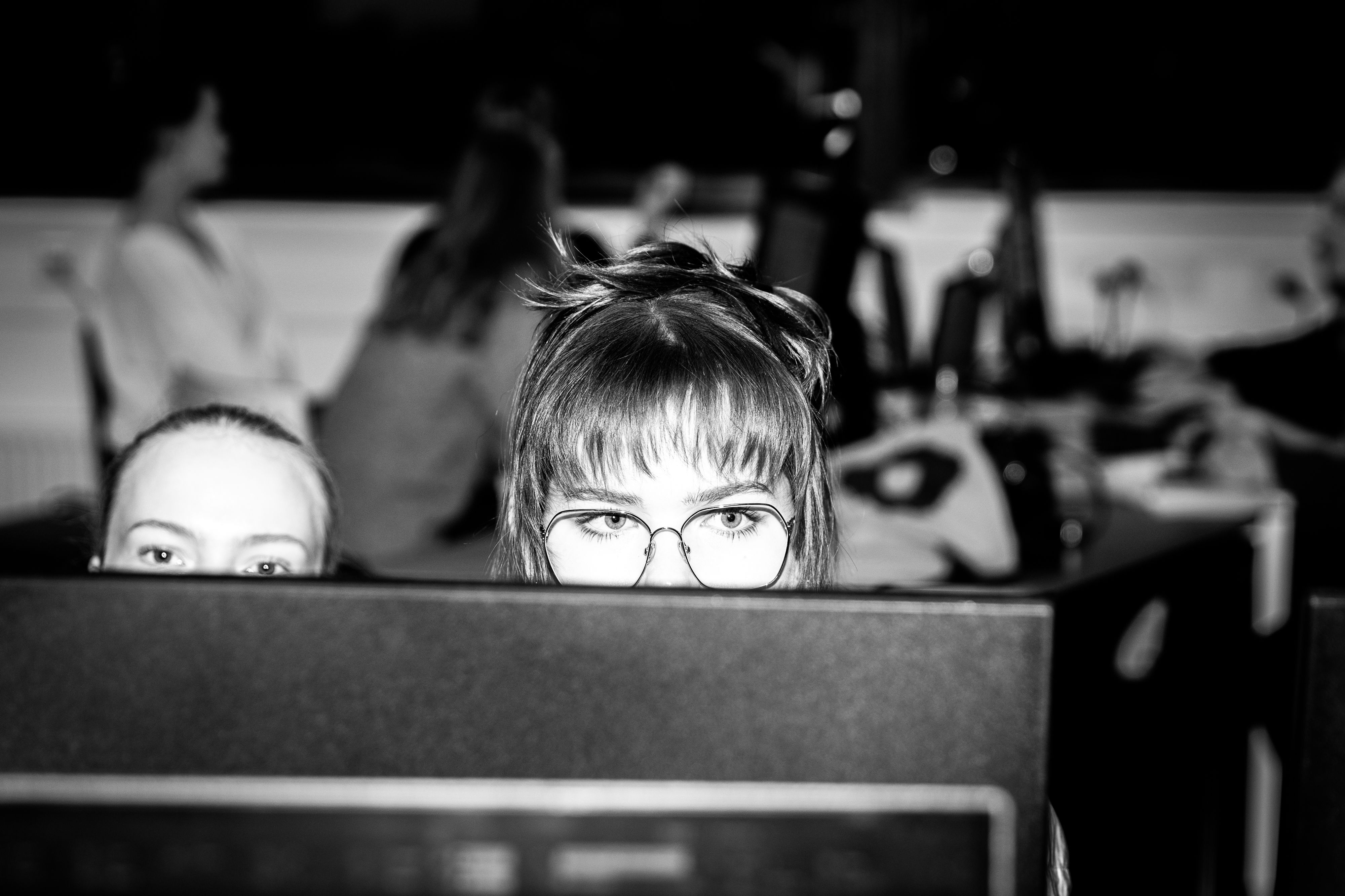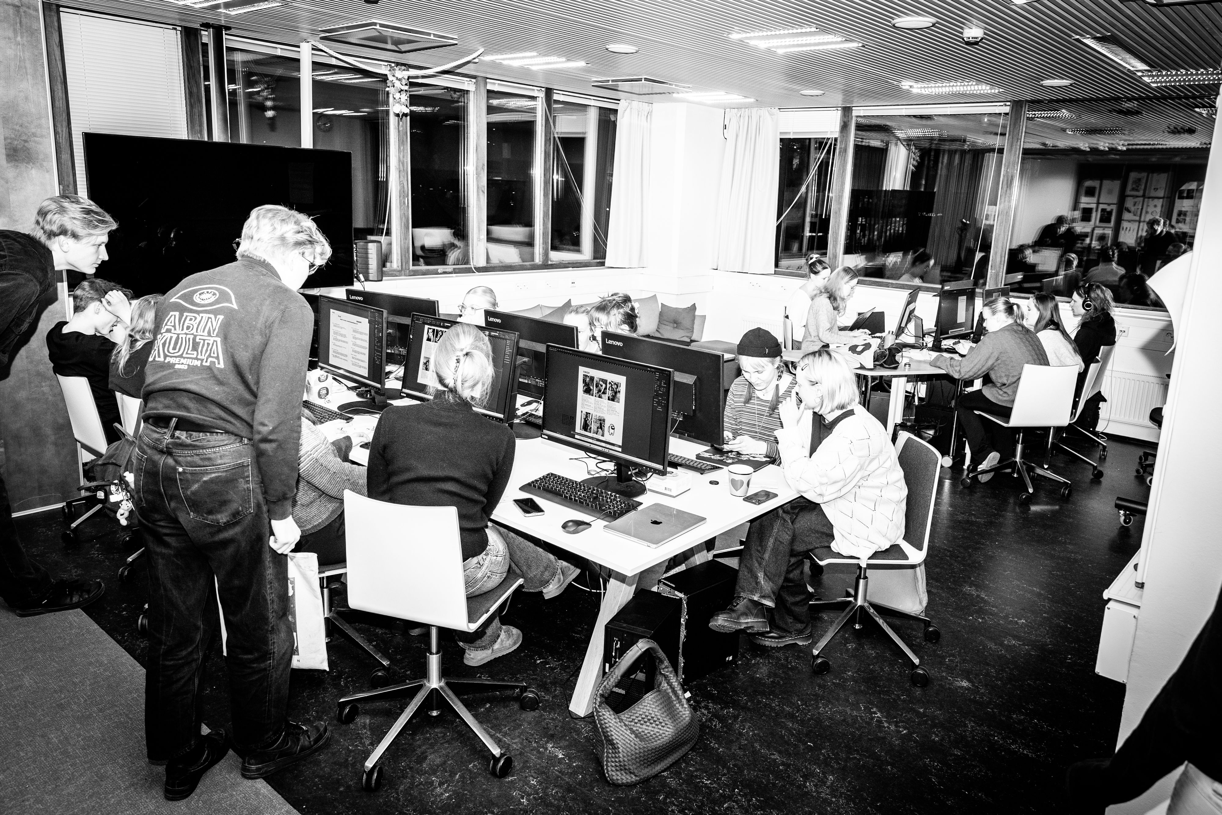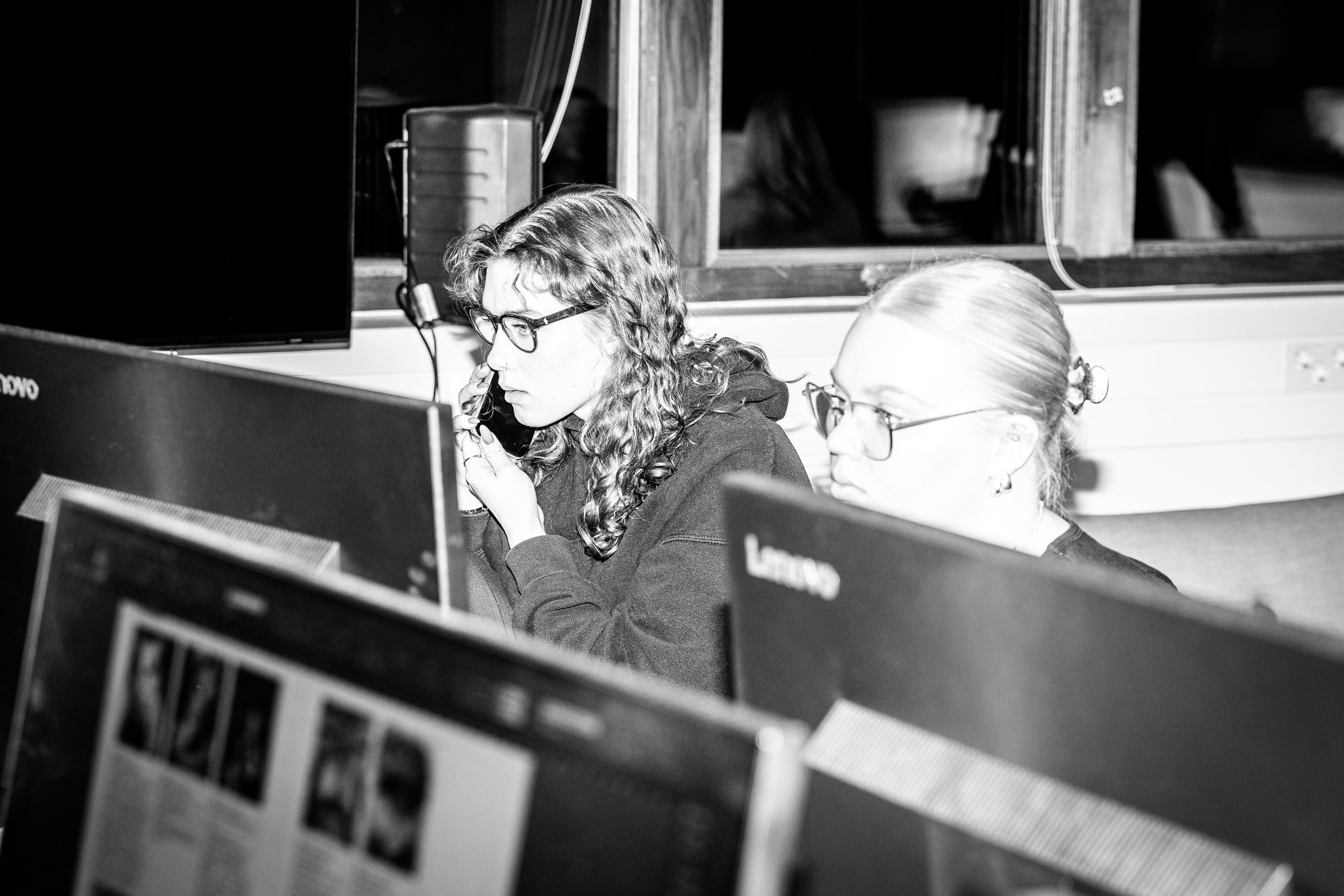 Vuoden 2025 ensimmäistä Gonzoa taitetaan journalistiopiskelijoiden harjoitustoimituksen Leiska-huoneessa maanantaina 3. helmikuuta. Kaikki taittokoneet ovat käytössä. Joskus, kun taittajia on vielä enemmän, toimitus levittäytyy myös harjoitustoimituksen muille taittokoneille.