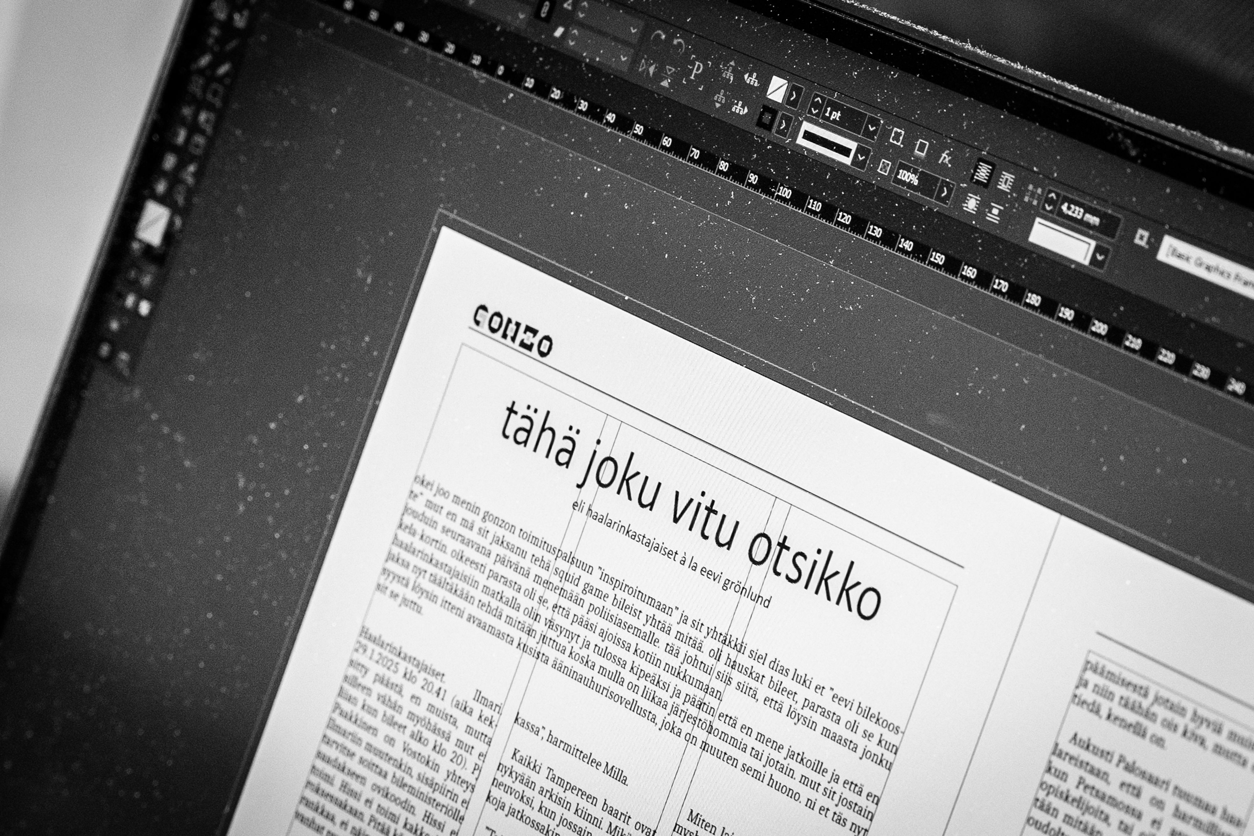 Viimeinen vaihe on kokoaminen, jonka päätoimittajat tekevät. Siinä lehden sivut viilataan vielä kuntoon, järjestellään paikoilleen ja paketoidaan. Kuulostaa yksinkertaiselta, mutta ei välttämättä ole.