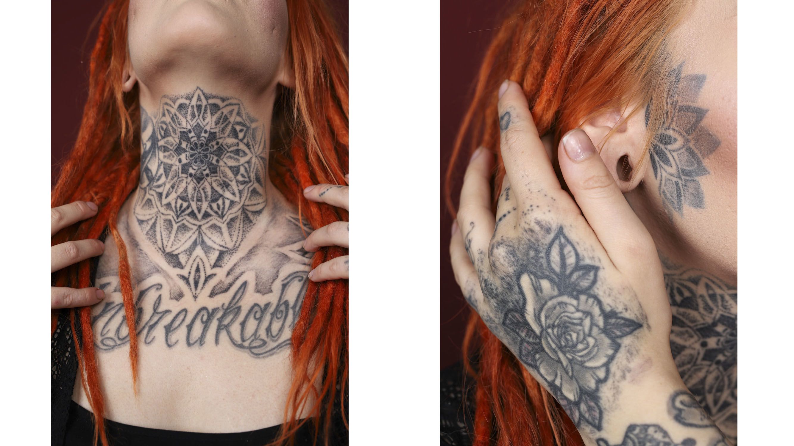 “Teen tällä hetkellä töitä asunnottomien päihteidenkäyttäjien kanssa, eikä ulkonäköni ole aiheuttanut asiakkaissa negatiivisia reaktioita. Päinvastoin tatuoinnit ovat hyvä keskustelunavaaja.”