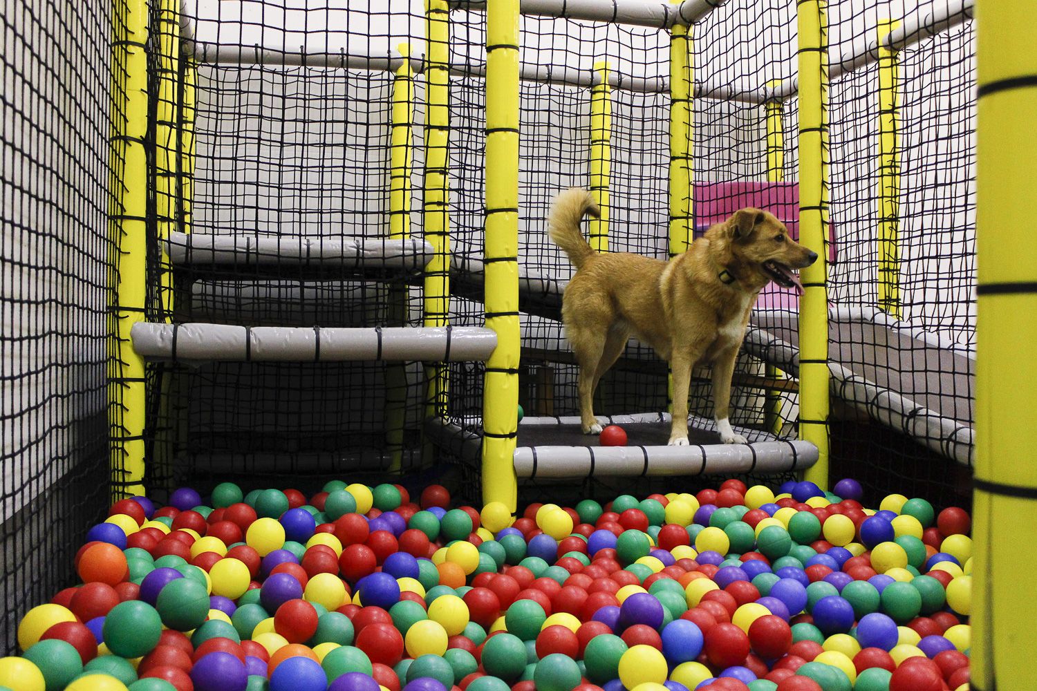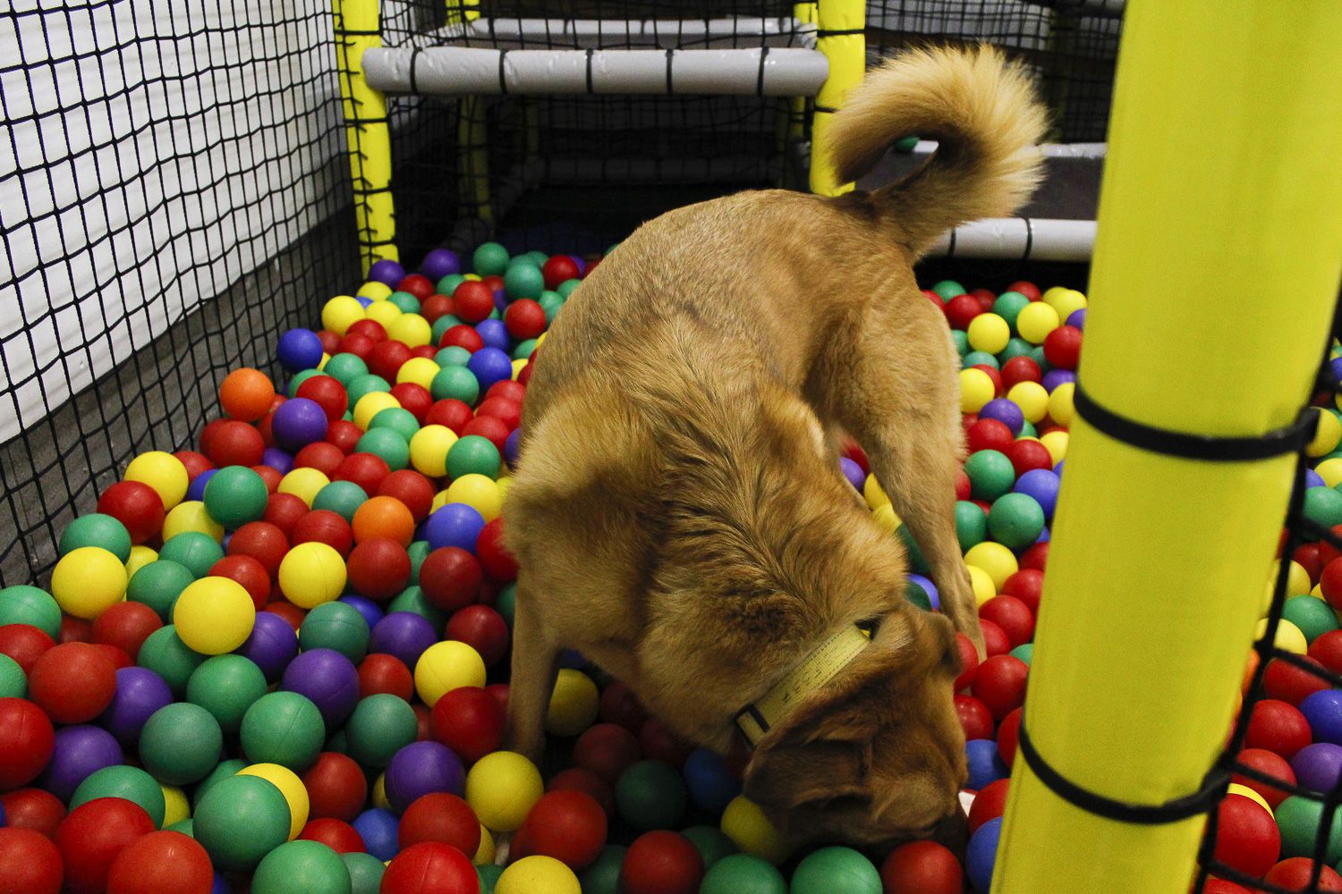 Iltapäivän hulina jatkuu Pätkiksen kanssa isossa hallirakennuksessa. Sisältä paljastuu koirien oma leikkimaa, joka muistuttaa pitkälti sisäleikkipuisto Hoplopia.