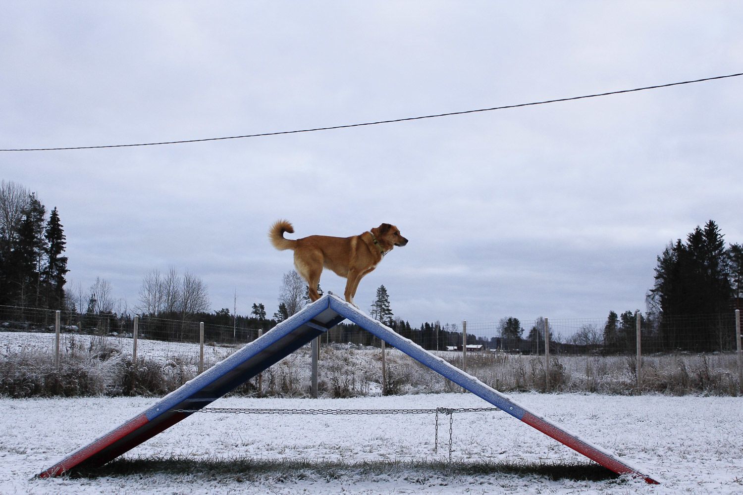 Yli hehtaarin kokoisessa puistossa on aktiviteettiä jokaiseen makuun. Sieltä löytyy muun muassa agility-rata sekä oma alue innokkaille kaivajille, ja kesäisin käytössä on myös uimalampi. Pätkis ja Foxi nauttivat kaikista virikkeistä huolimatta eniten keskenään temmeltämisestä. Koirakaverien leikki yltyy välillä niin riehakkaaksi, että on väistyttävä pois alta.
