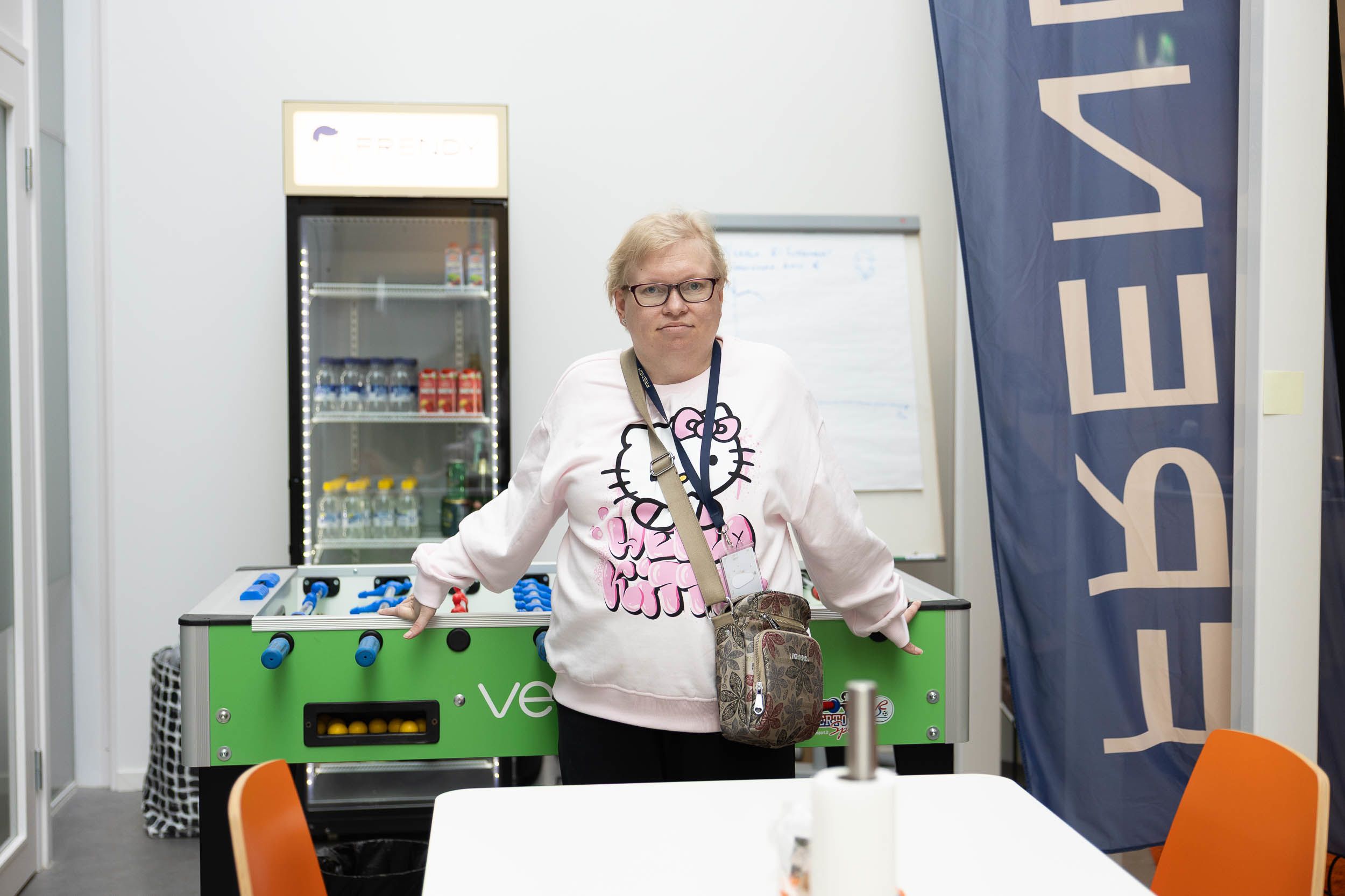 Paulaniemi kertoo valkoisen toimistopöydän ääressä saaneensa Nuutisaran toimintakeskuksen kautta palkkatöitä IT-palveluyritys Frendystä ja toimii siellä ikään kuin toimiston kodinhengettärenä.