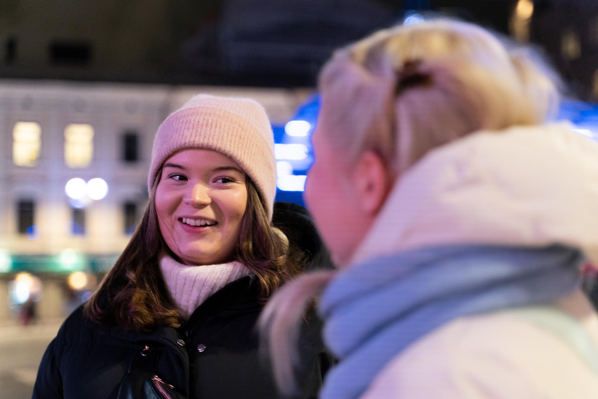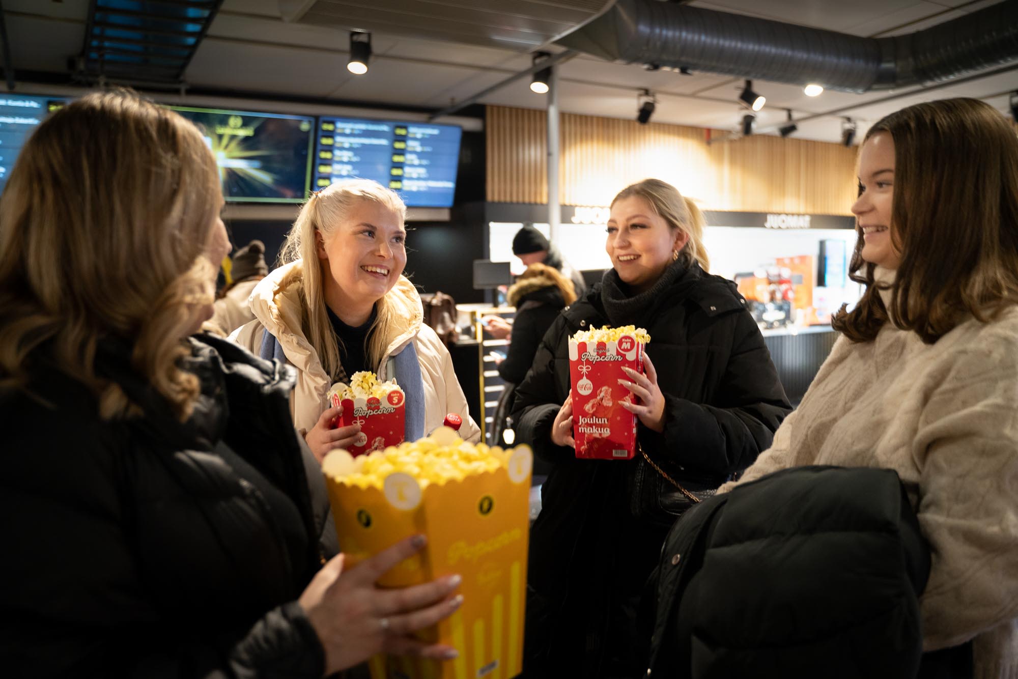 Elokuvateatterissa lämpimän popcornin tuoksu vyöryy meitä vastaan. Aulassa vastassa ovat “Teiskotytöt” eli Julinin serkku Kerttu Julin, ystävä Neea Niemelä ja pikkusisko Silja Julin. Ystävykset halaavat, vaihtavat muutaman sanan ja katoavat sitten liukuportaita pitkin elokuvasaliin popcornit käsissään.