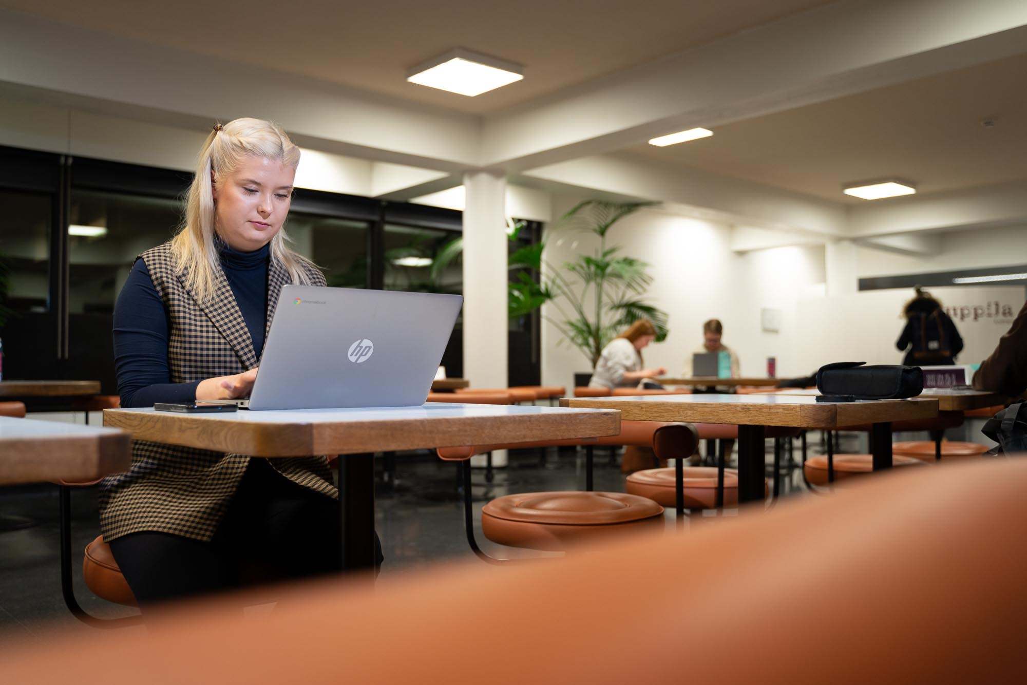 Tampereen yliopiston Alakuppilassa vakavana koneensa ääressä istuu Sofia Julin. Tänään Julin on viettänyt koko päivän kutsunnoissa 18-vuotiaiden palveluskelpoisuudesta päättävässä kutsuntalautakunnassa. Lautakunnan jälkeen Julin on ollut yliopistolla opiskelemassa.