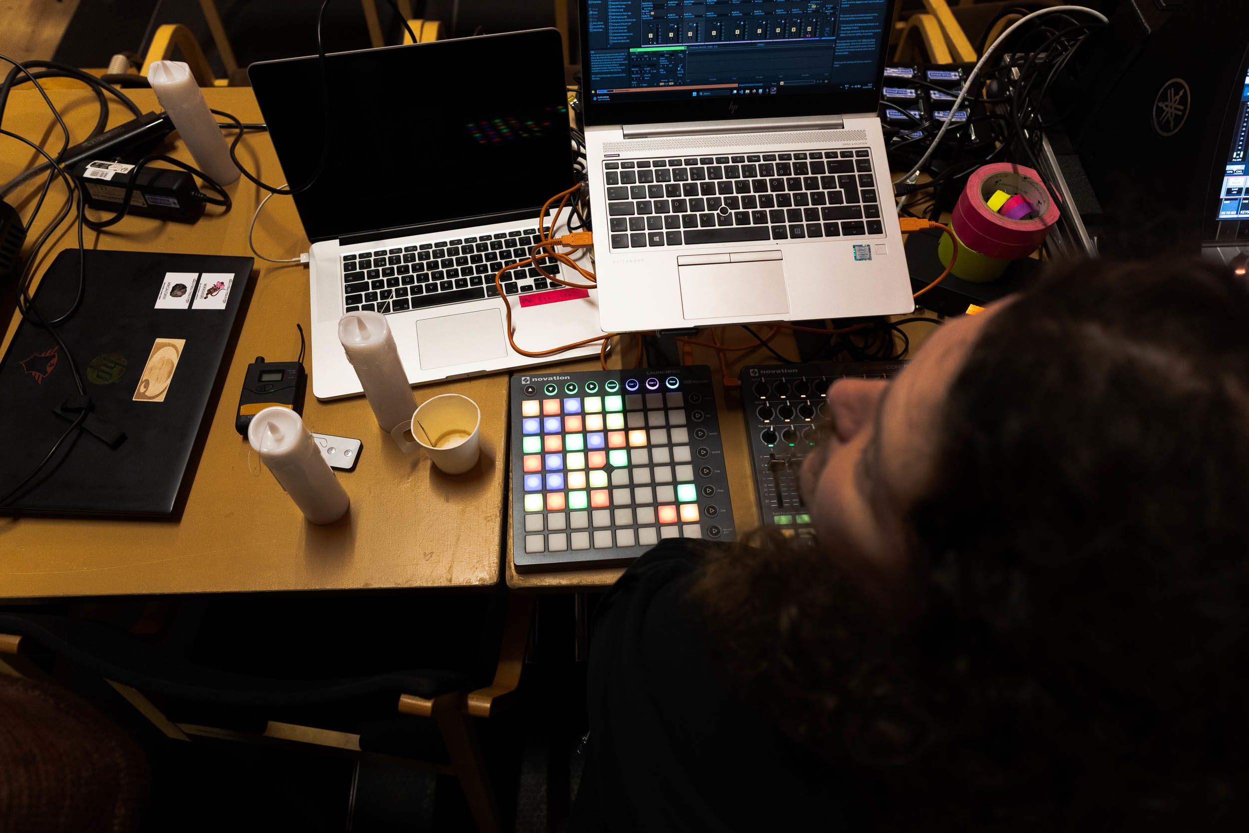 Tekniikan työryhmän Sampo Syrjänen esittelee Nääspeksissä käytettävää tekniikkaa.