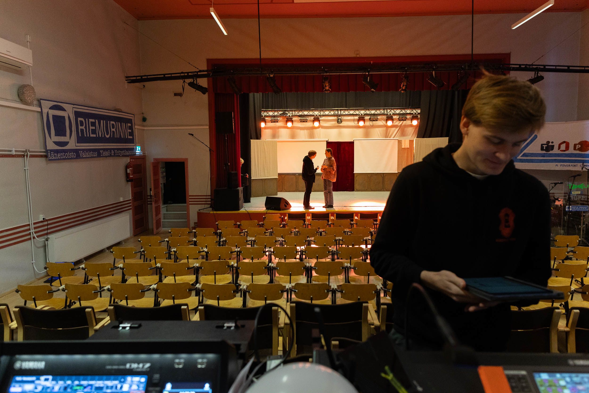 Nääspeksissä tekniikkaa käytetään muun muassa ääniin, musiikkiin, valoon ja mikitykseen. Eerik Kaukovirta auttaa mikityksessä.