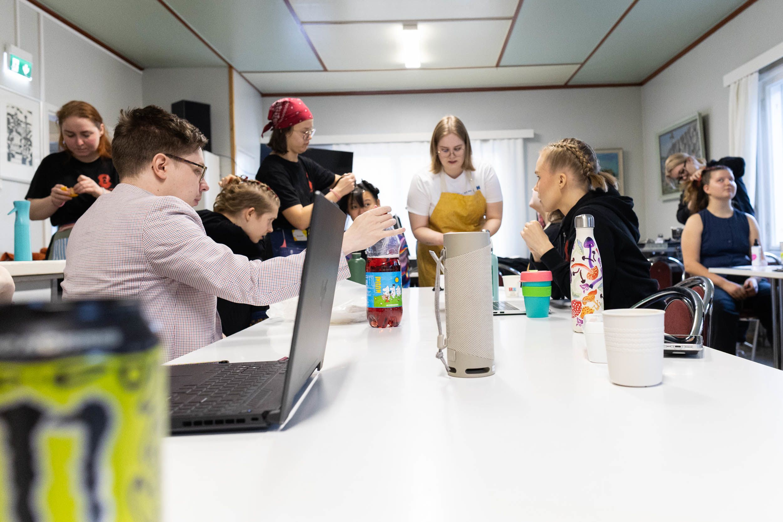 Kaiuttimesta soi Lady Gaga. Messukylän työväentalon kahvion pöydät ovat täynnä lakkapulloja ja energiajuomia. Joku puurtaa koulutehtäviä ja ensimmäiset maskeeraukset on jo aloitettu.