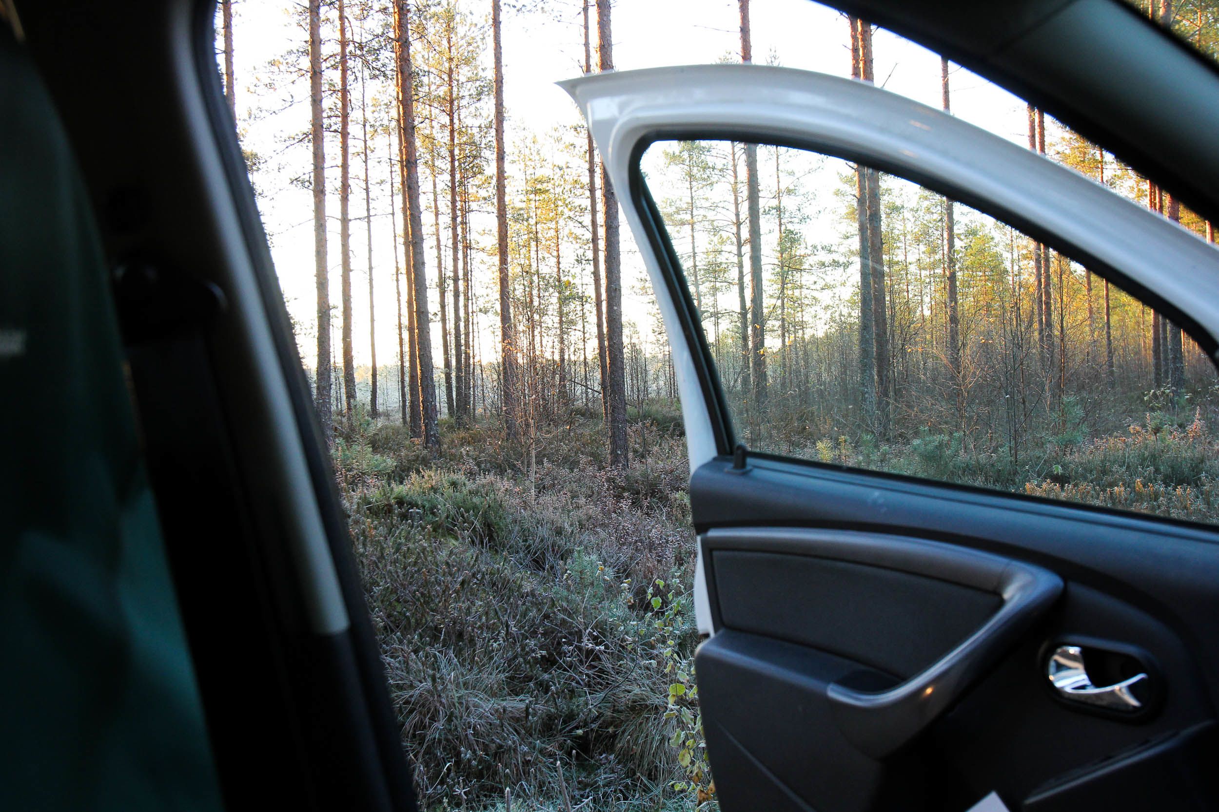 Lähtiessämme kotoa kello on noin vartin yli seitsemän ja ulkona on vielä hyvin pimeää. Istun pelkääjän paikalla ja katselen ikkunasta ulos. Olemme matkalla metsästysseuran hirvimajalle, mutta sitä ennen käymme katsomassa, onko isän riistakameraan tallentunut kuvia.