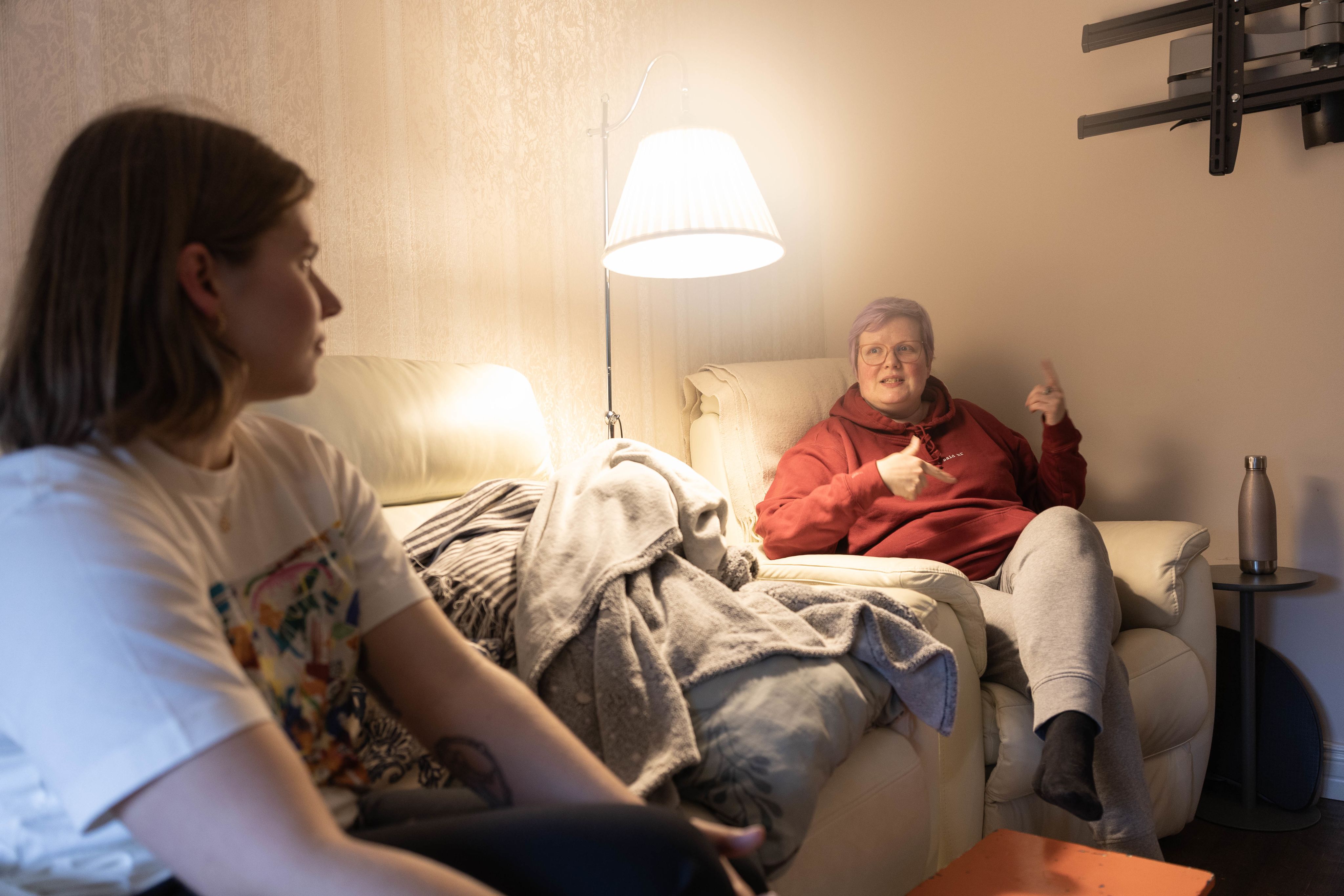Jenni kertoo huvittuneena juuri purkaneensa turhautumistaan kyseiseen kotiin, ja uutta on jo ehditty katsoa. Pääsemme silti visiitille, ja se ilahduttaa kovasti. Heillä on lämpöinen ja huumorintäyteinen koti, joka toivottaa tervetulleeksi.