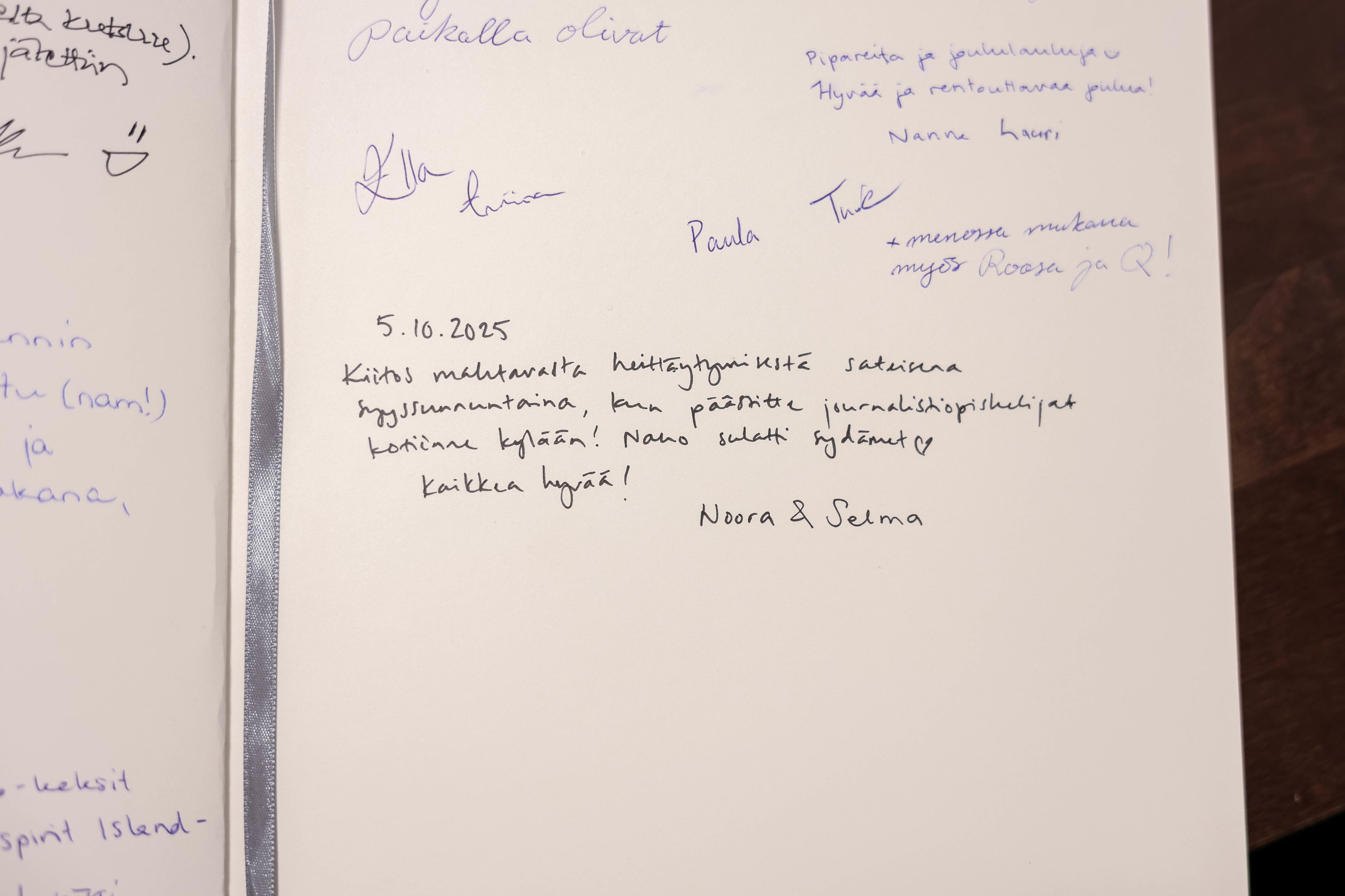 On puhuttu kotipaikoista, työllistymisestä, lemmikkien kouluttamisesta sekä pikkuisista lintufiguureista. Kissa on saanut herkkuja, me lämpimän vastaanoton.