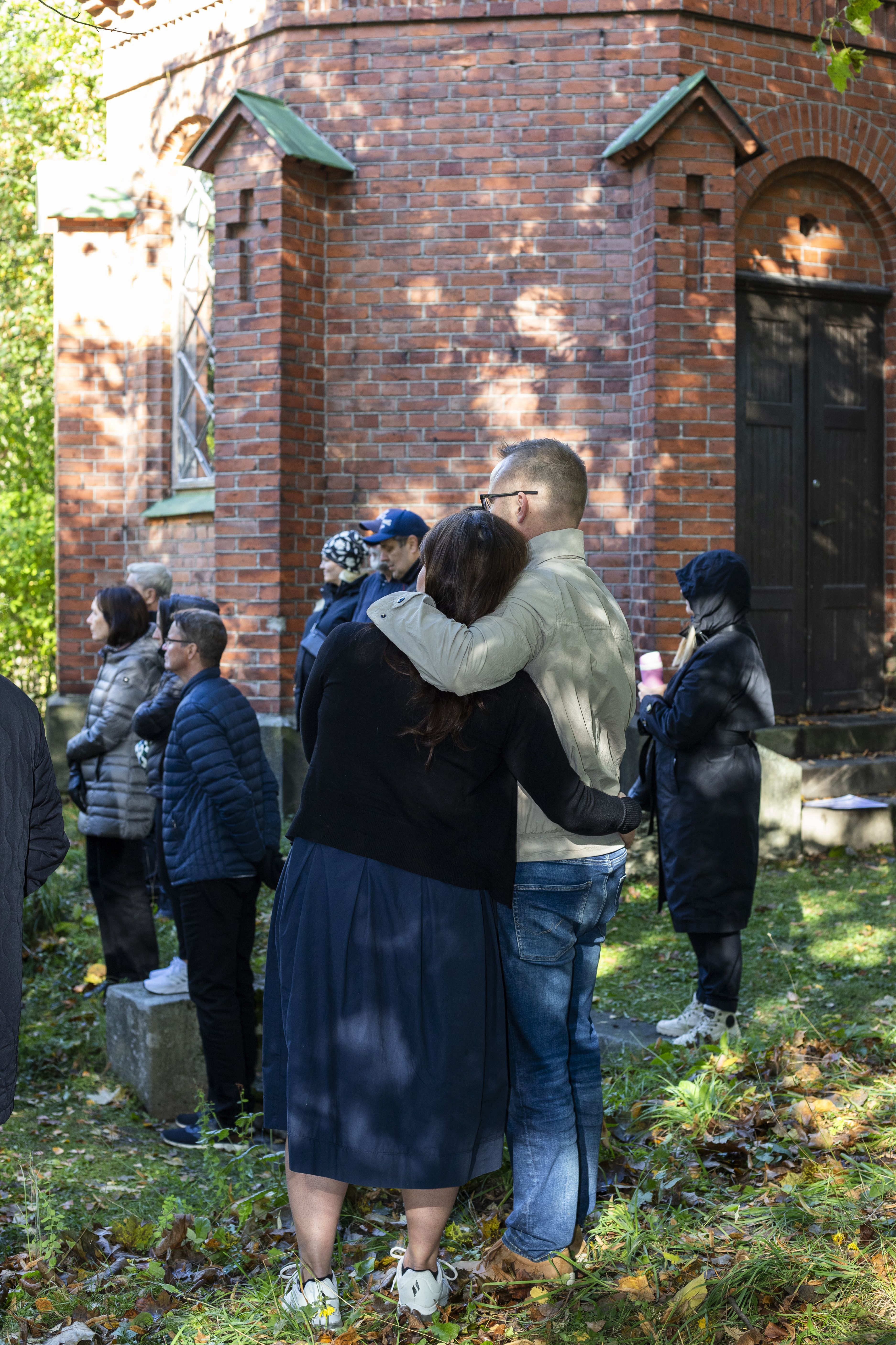 Viimeinen Lielahteen haudattu von Nottbeck, Andrée, saatetaan haudan lepoon ja kierros päättyy. Yleisöstä moni kiittelee. Paikallishistorialle on selvästi kysyntää.
