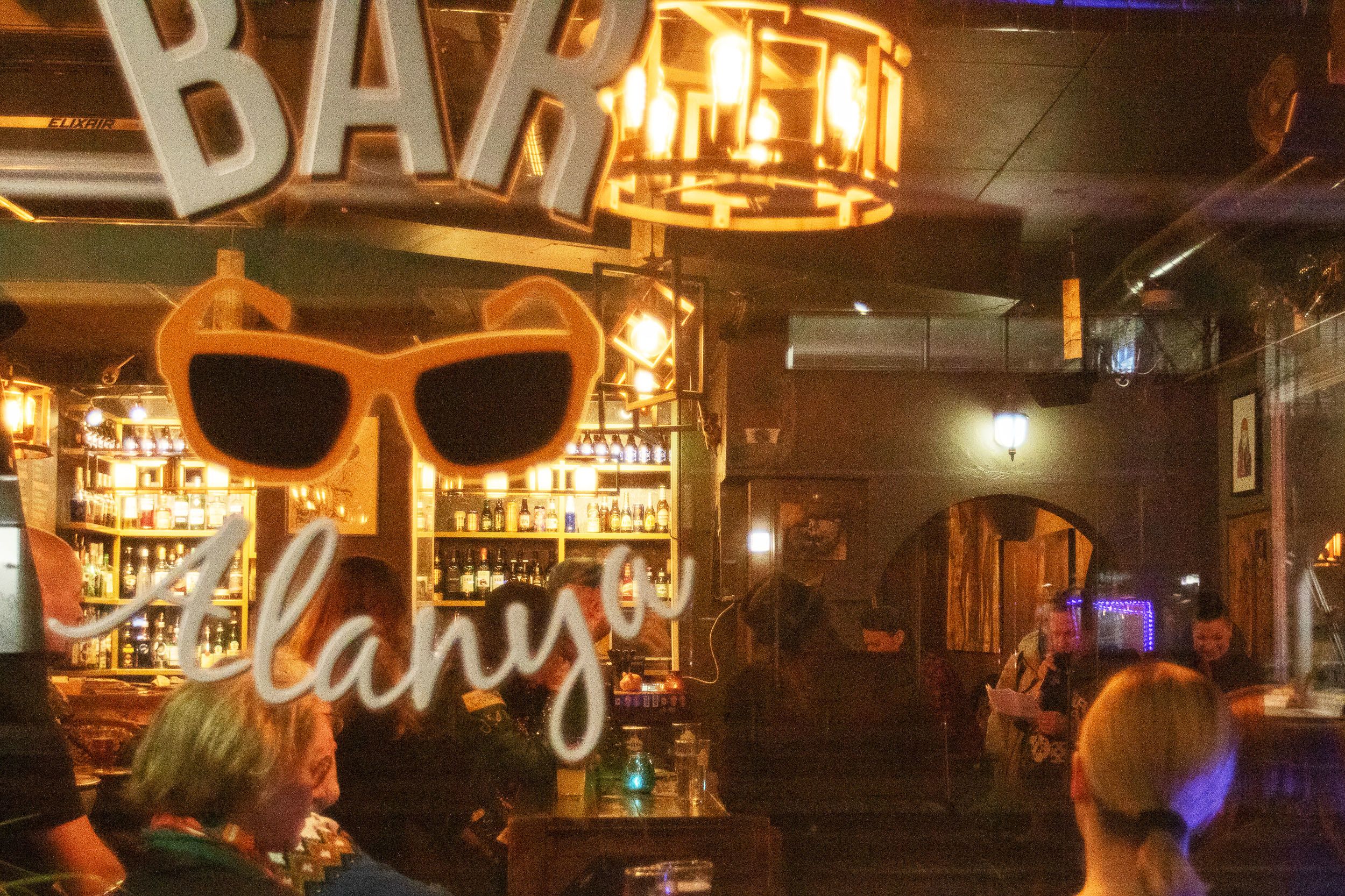 Bar Alanya Tampereen Satakunnankadulla kuhisee rentoa puheensorinaa. Valaistus on tunnelmallisen himmeä, jokaisessa pöydässä tuikkii erivärinen venetsialyhty.