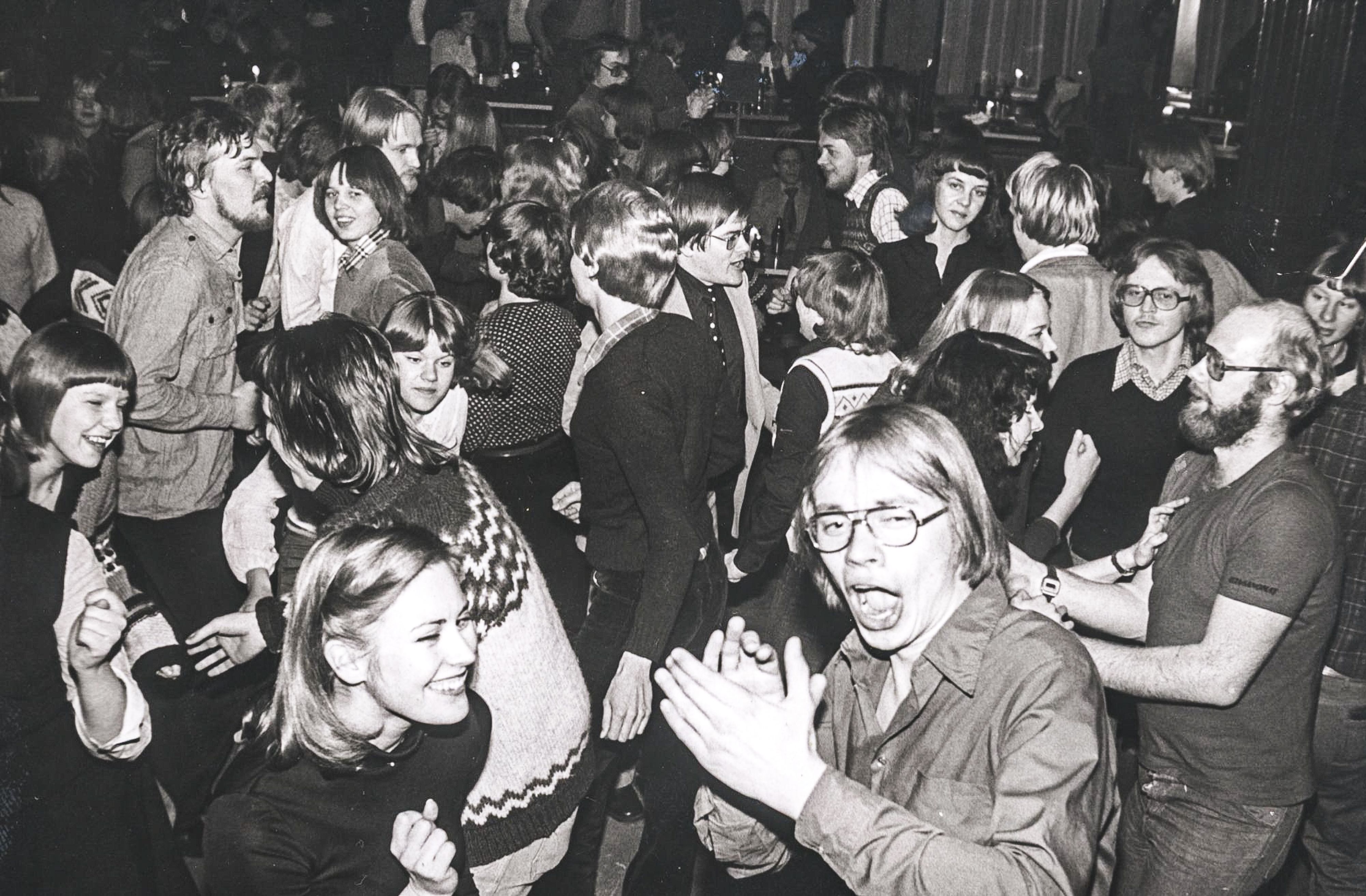 Bilettäjiä Ylioppilastalolla 1970-luvun lopulla. Etualalla kirjailija, toimittaja Juha Ruusuvuori.