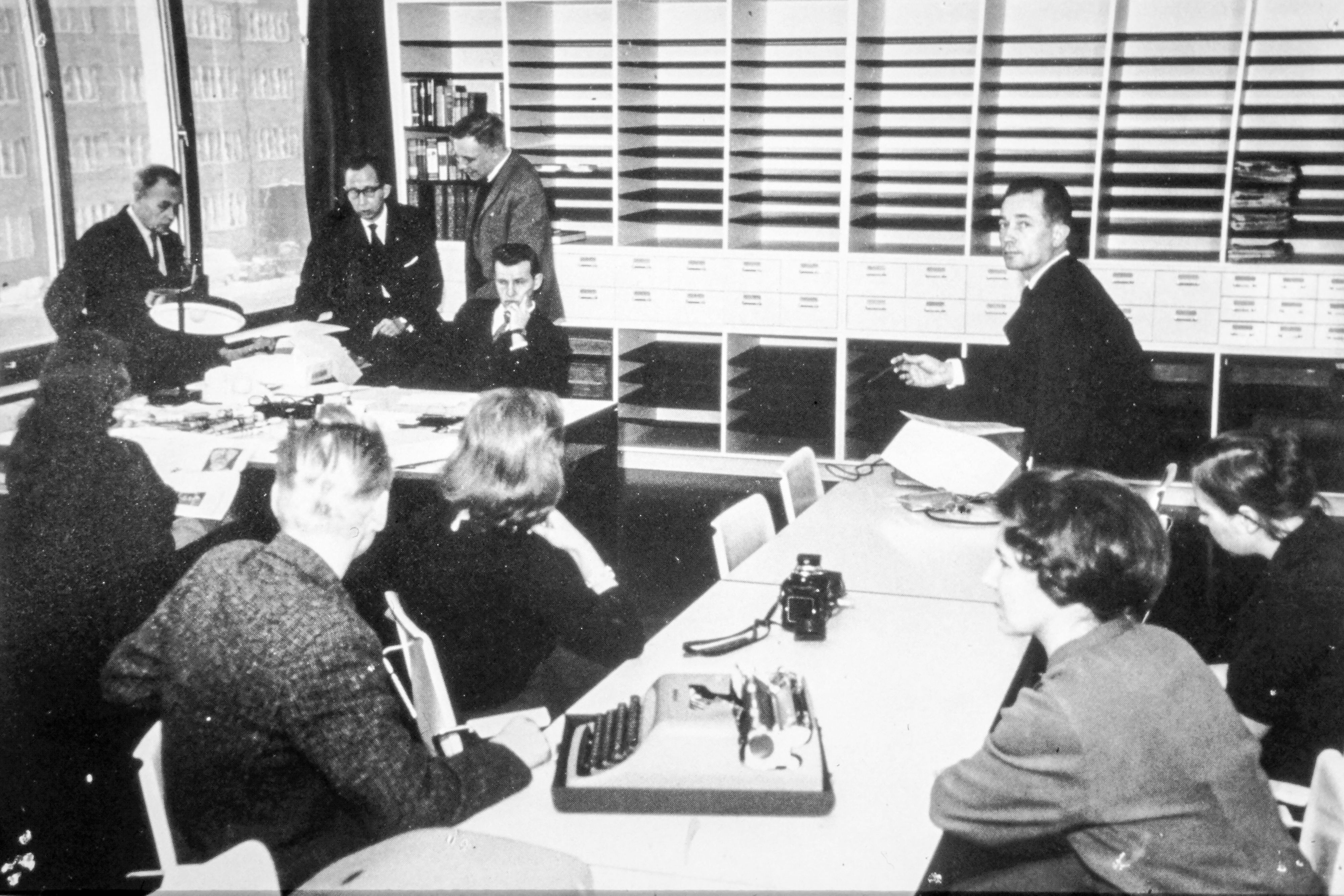 Pentti Salmelin (katse kameraan) aloitti sanomalehtiopin lehtorina Yhteiskunnallisessa korkeakoulussa jo 1950-luvulla ja jatkoi opetustyötä ja tutkimusta Tampereella 1960-luvulla.