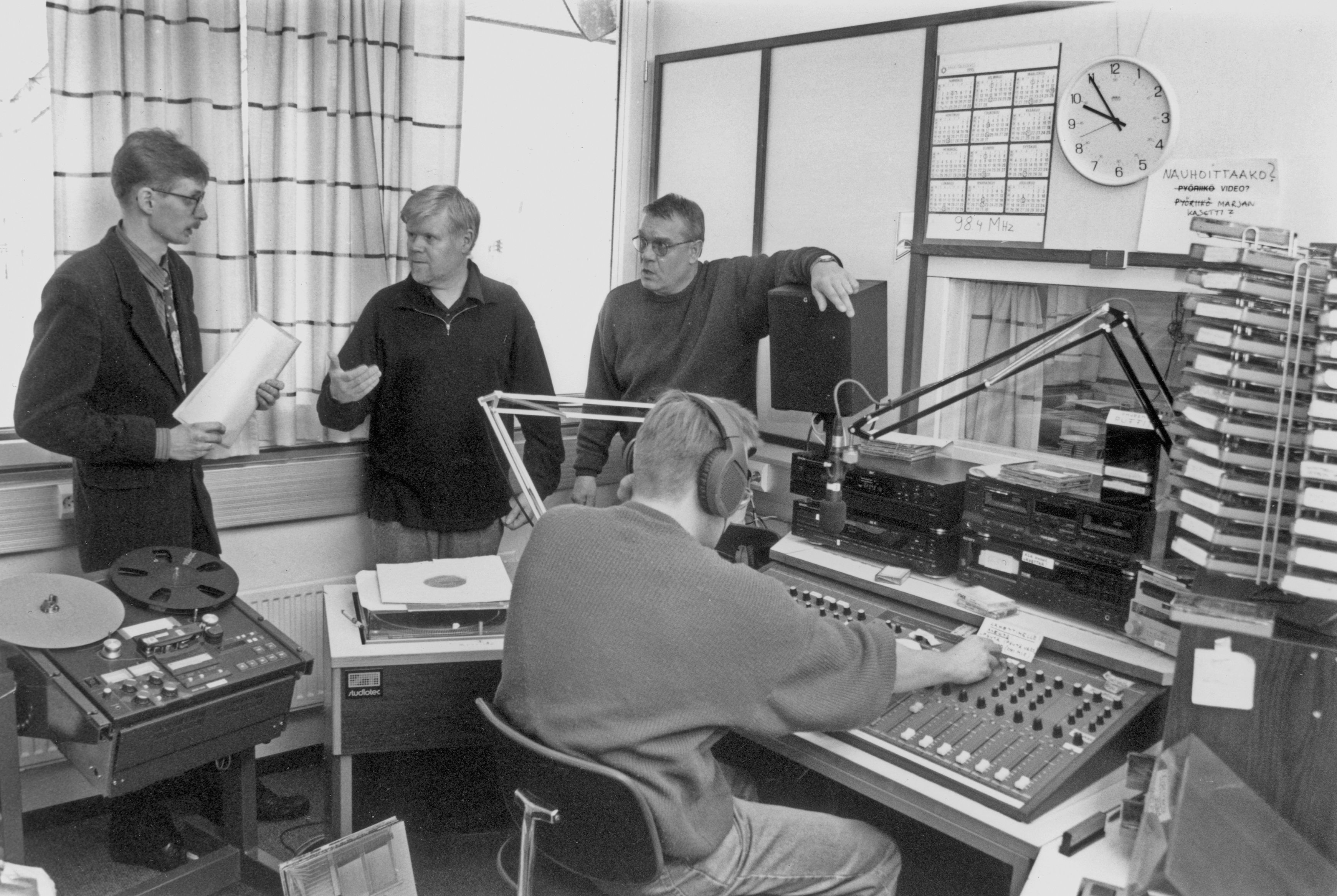 Taustan kuvissa Radio Moreenin elämää 1990-luvulla.