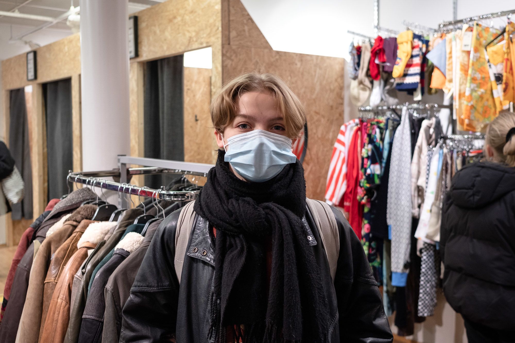 Minttu, 13, on ostoksilla UFF:n vintage-myymälässä. Hän ostaa lähes kaikki vaatteensa käytettynä. Eettisyys on tärkeää, mutta second hand -vaatteet sopivat myös yleisesti parhaiten Mintun tyyliin.