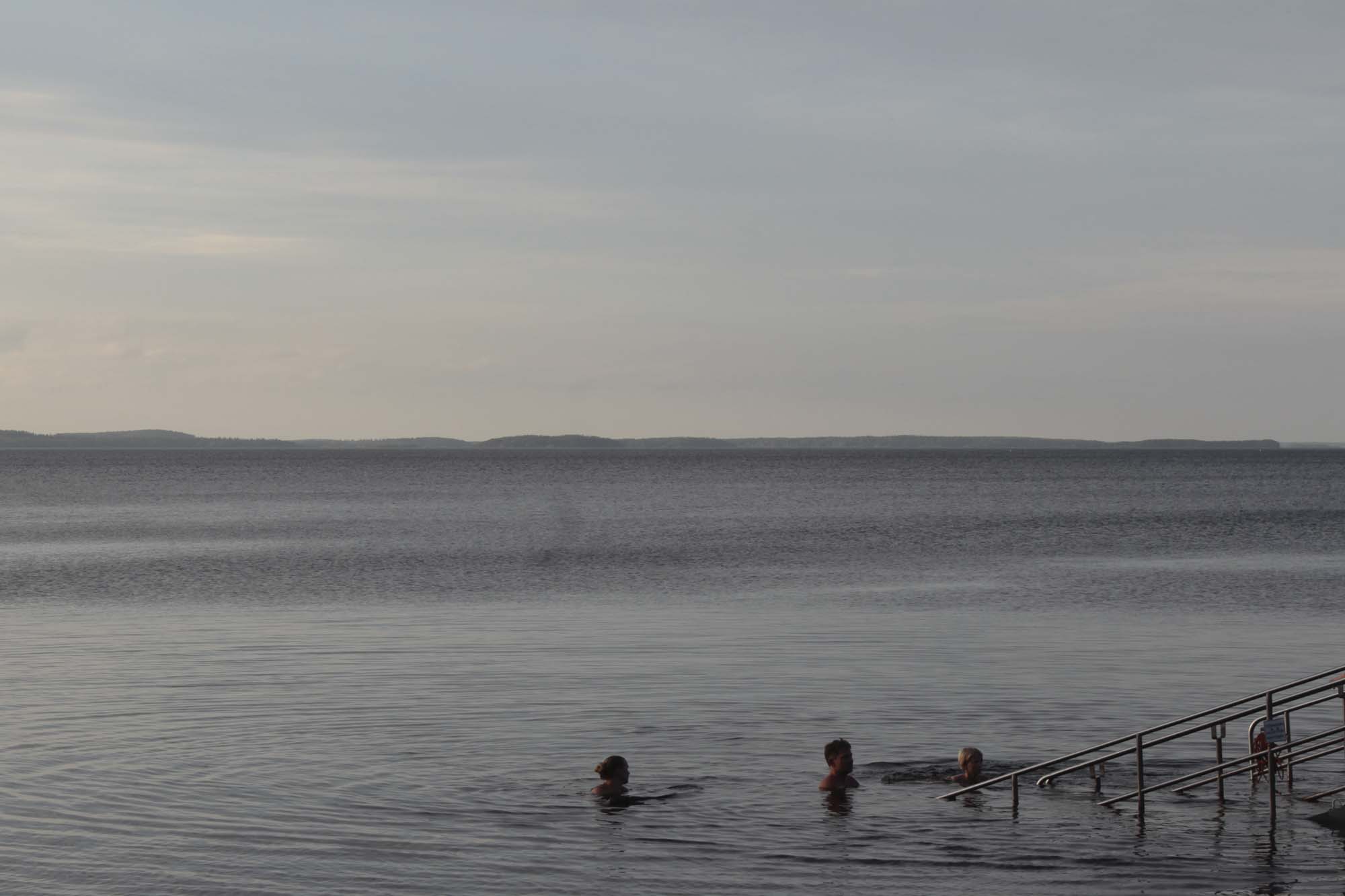 Jo tässä vaiheessa koen osittain pääseväni jyvälle Rauhaniemen hengestä. Kaikki pukuhuoneen ihmiset vaikuttavat jotenkin niin lämpimiltä. Naureskellaan ja keskustellaan avoimesti. Eiväthän nyt missään muualla ihmiset luota yhtä paljon toisiinsa, että uskaltaisivat pitää ovia auki vaatteita vaihtaessa.