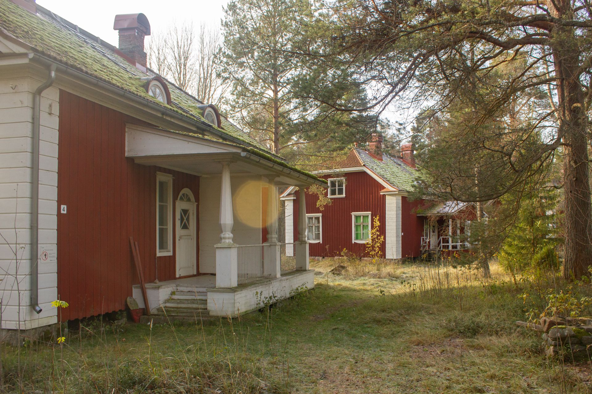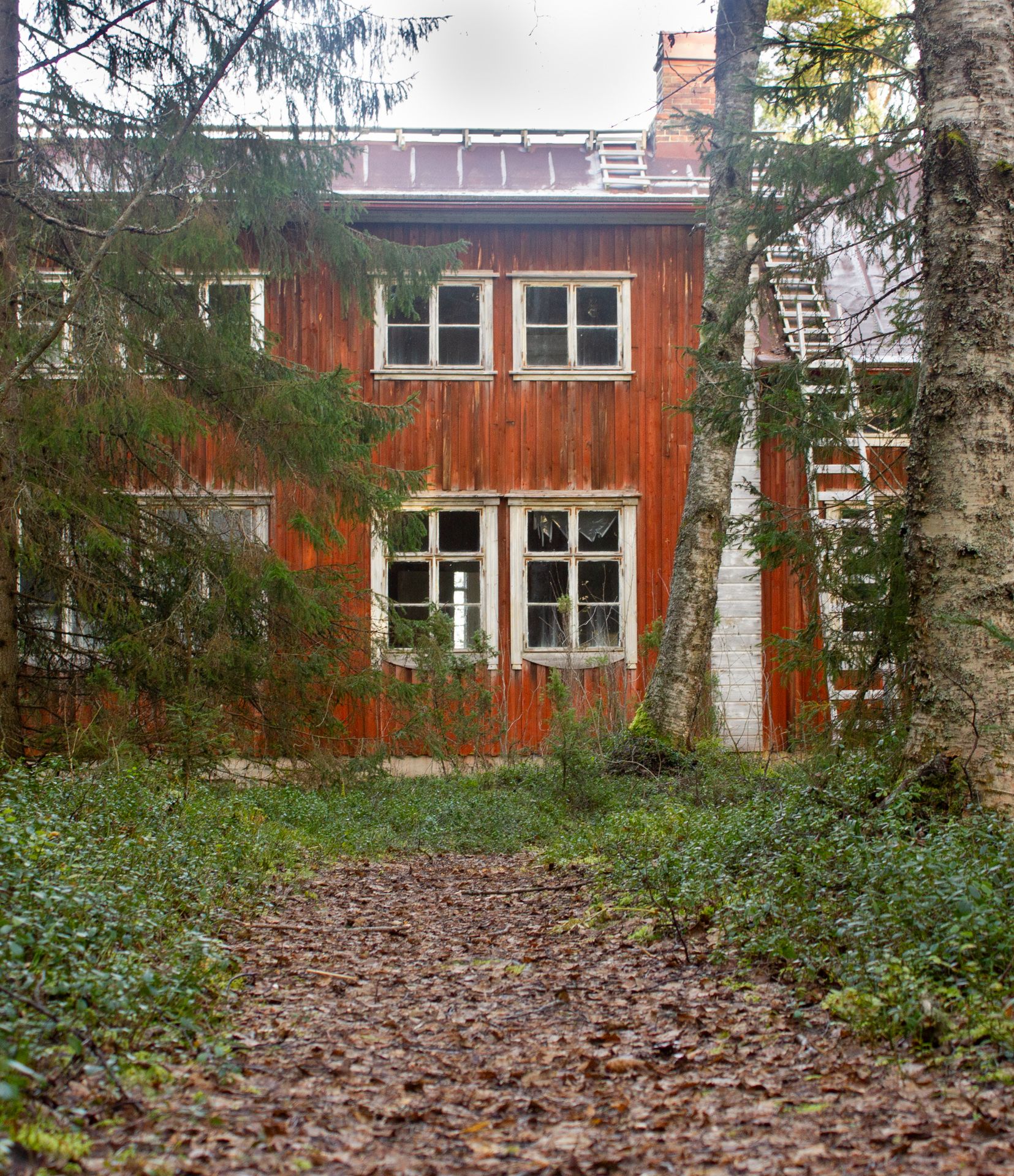 Saarella kävellessä vallitsee jopa aavemaisen hiljainen tunnelma. Monien rakennusten kohdalla aika vaikuttaa pysähtyneen. Kuvassa ajan kuluttama virkamiesten talo.