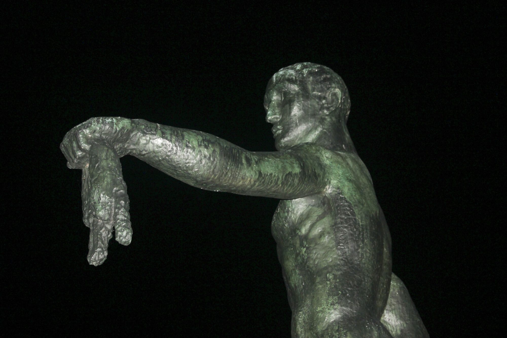 Kaupungin äänet hiljenevät ja ihmiset häviävät yksitellen sillalta. Seuranani ovat enää vain Pirkkalaisveistokset.