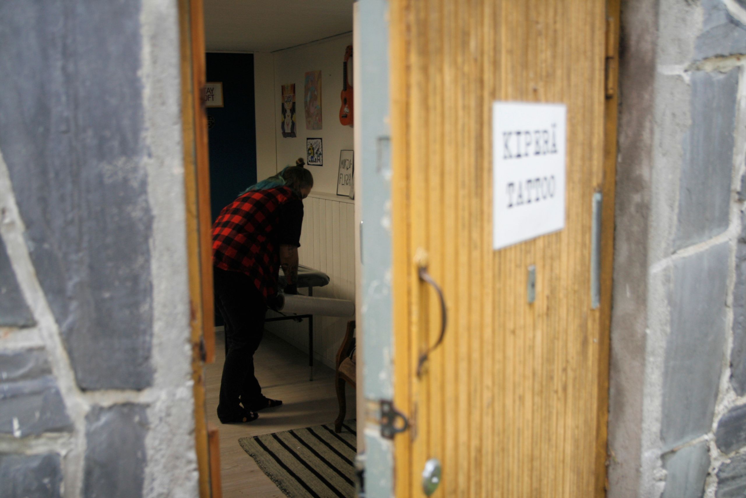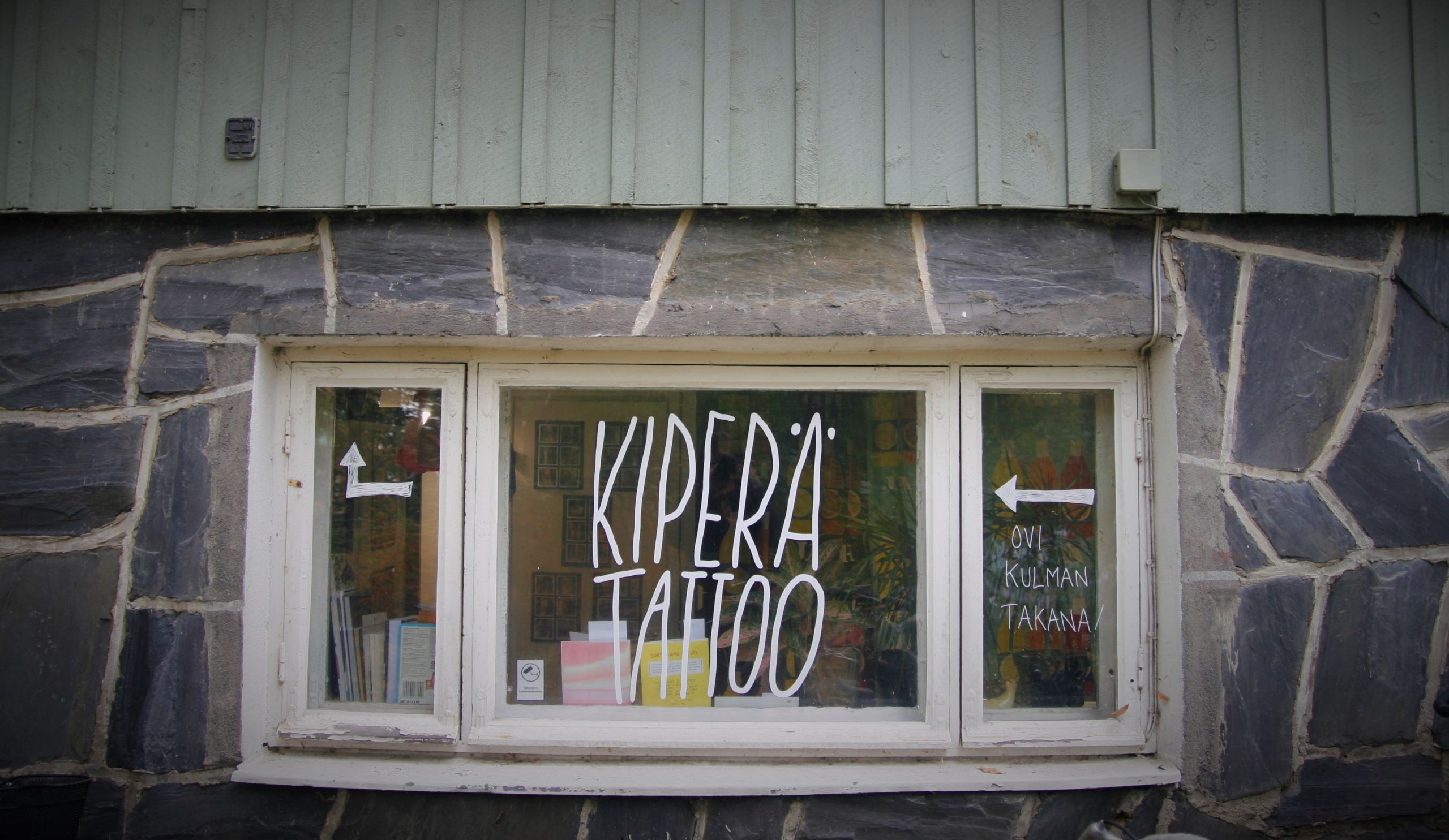 Vaaleanvihreän puutalon erottaa puiden lomasta, kun ruskan värjäämät lehdet muodostavat sille keltaisen kehyksen. Tatuointistudio Kiperä Tattoo sijaitsee Pyynikillä luontopolkujen ja luonnonsuojelualueen reunamilla, vanhassa kaksikerroksisessa talossa. Ilmassa on kosteutta yön sateiden jäljiltä ja auringonpaiste on epätavallisen lämmin.